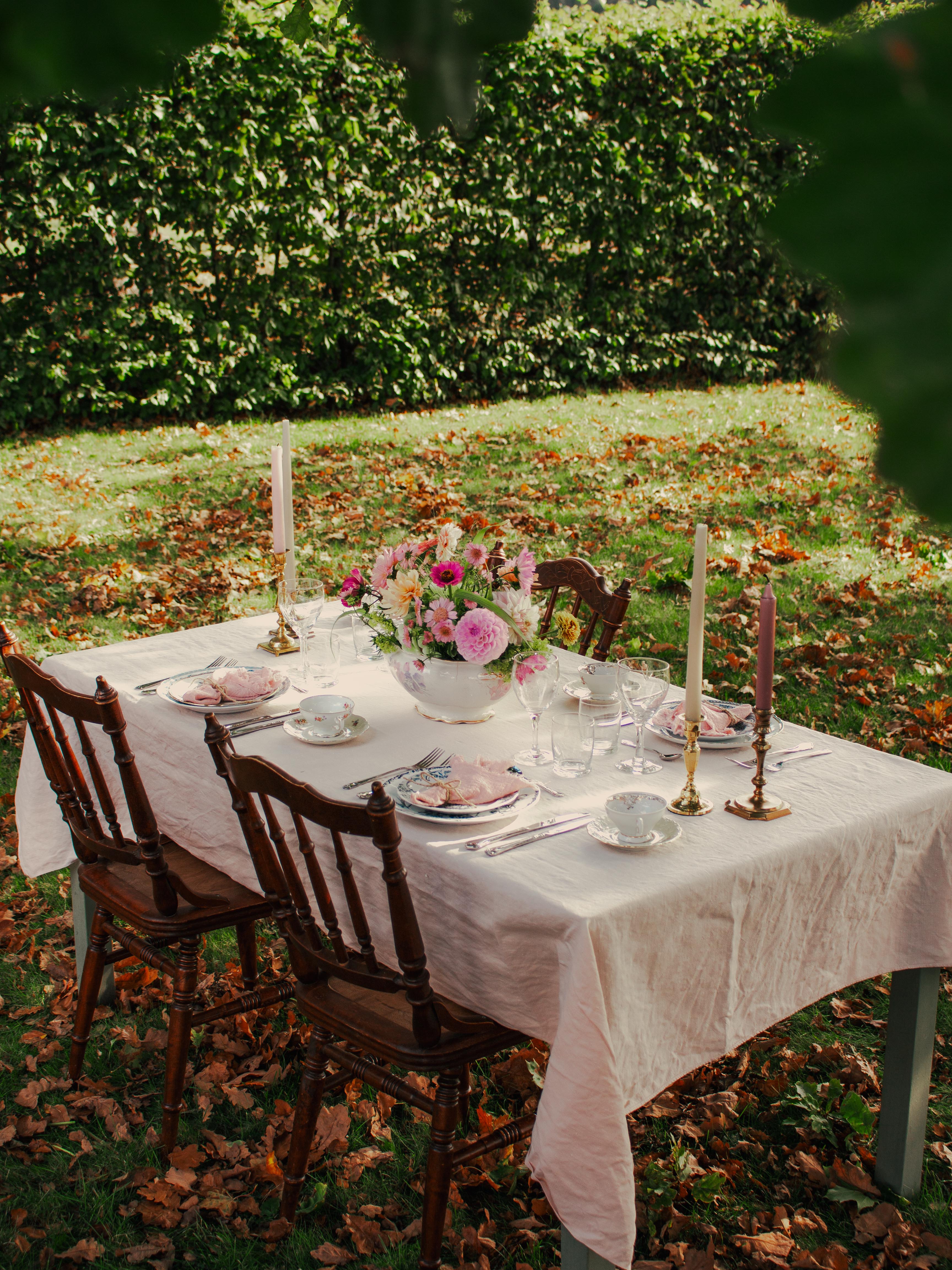 Porslin, glas och övrig dekoration är till stor del inköpt second hand och det är därför en blandning av olika storlekar, färg samt utseende. Så här går det till att hyra porslin.