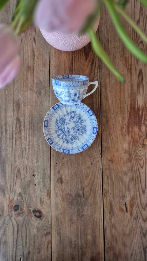 Vintage kopp med fat. Färg, form och storlek varierar.