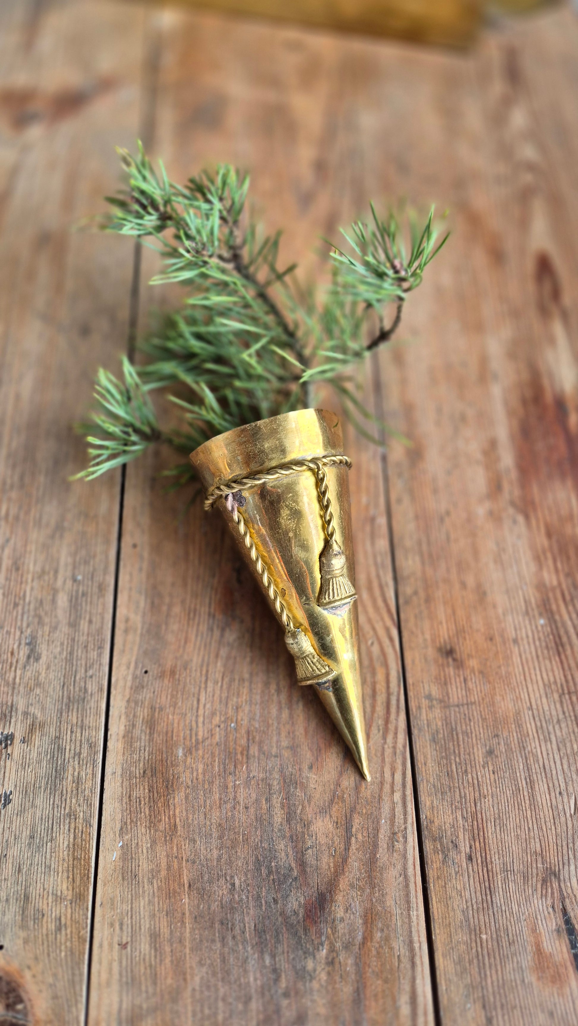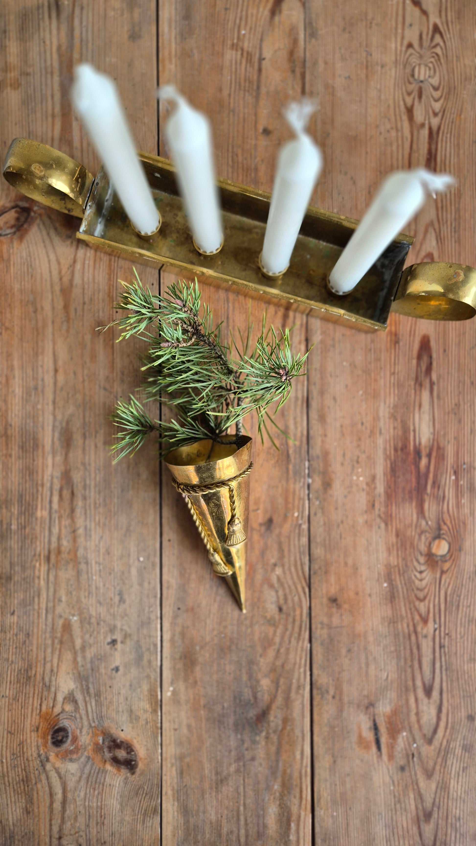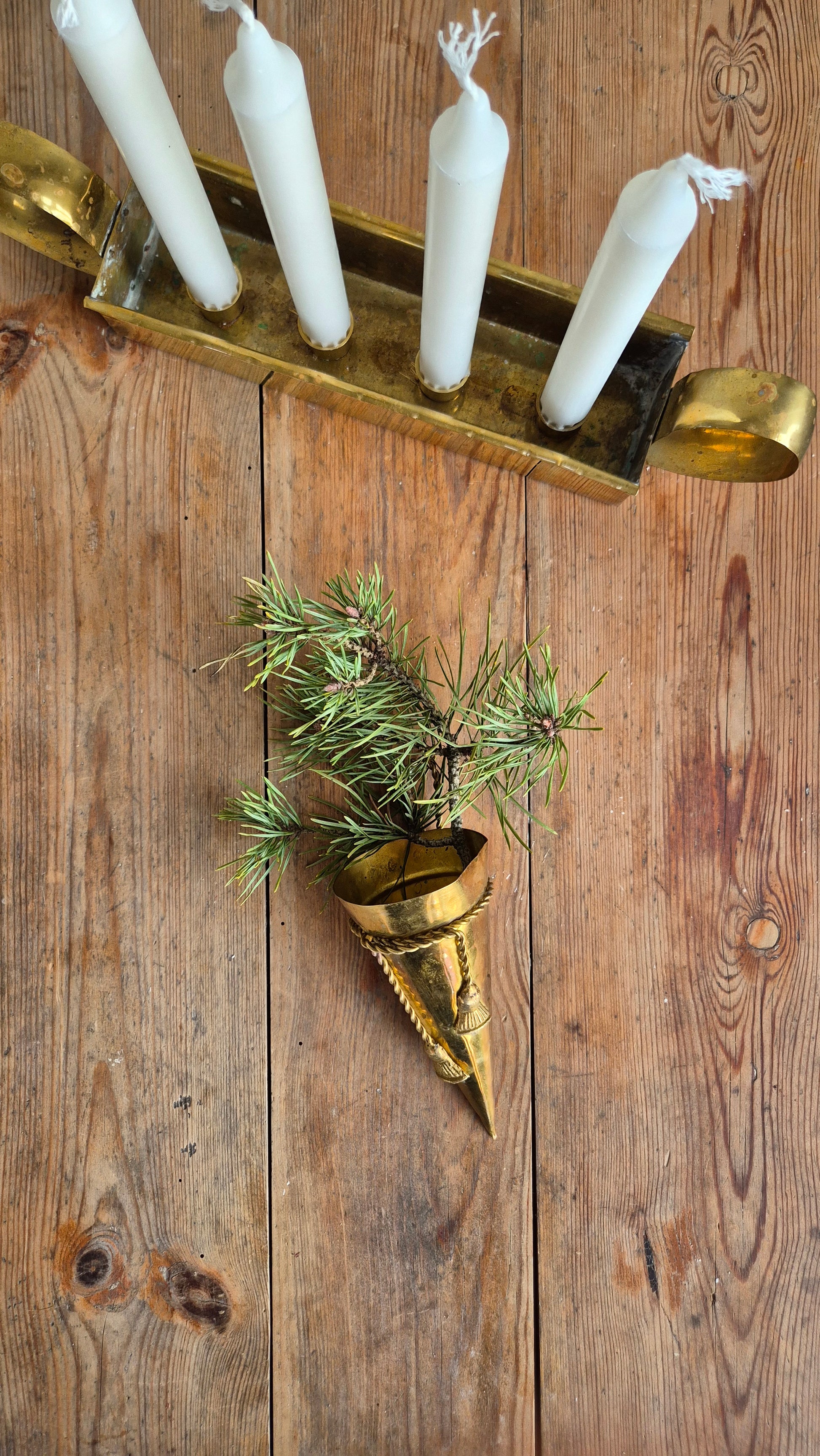 Vacker ampel i mässing. Häng upp på väggen, i granen eller lägg på bordet med lite granris. Fint skick. Mässingen har en fin patina.