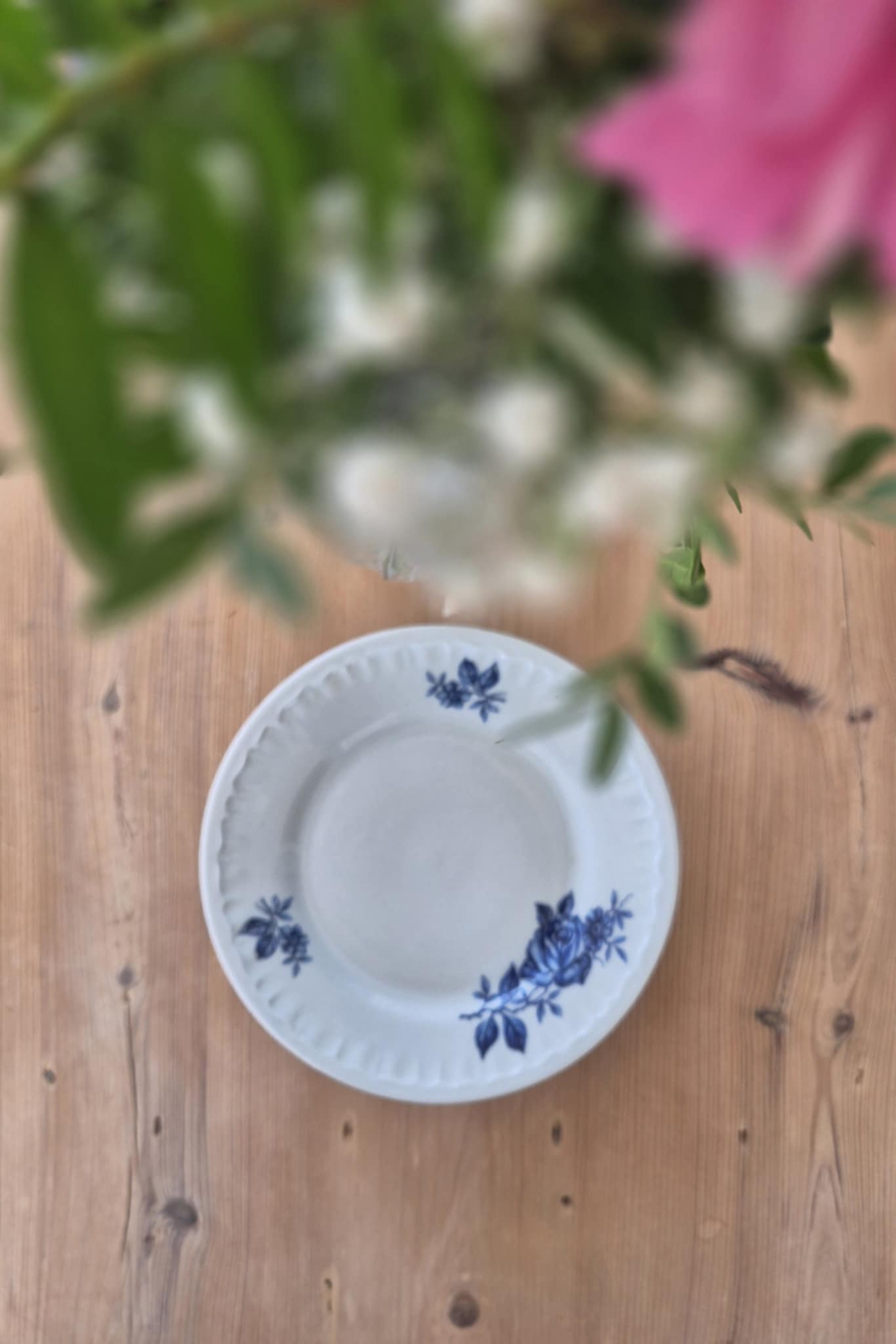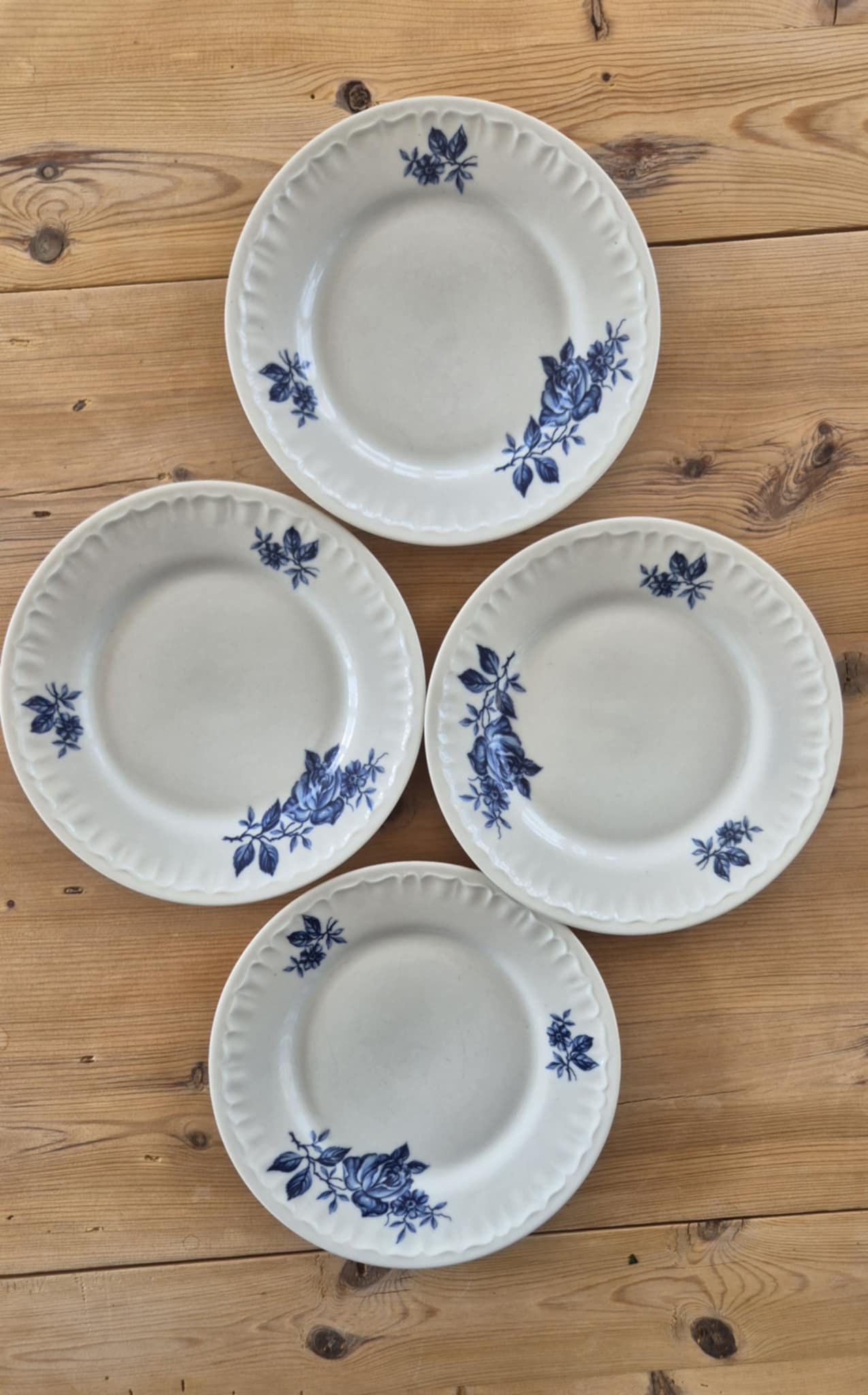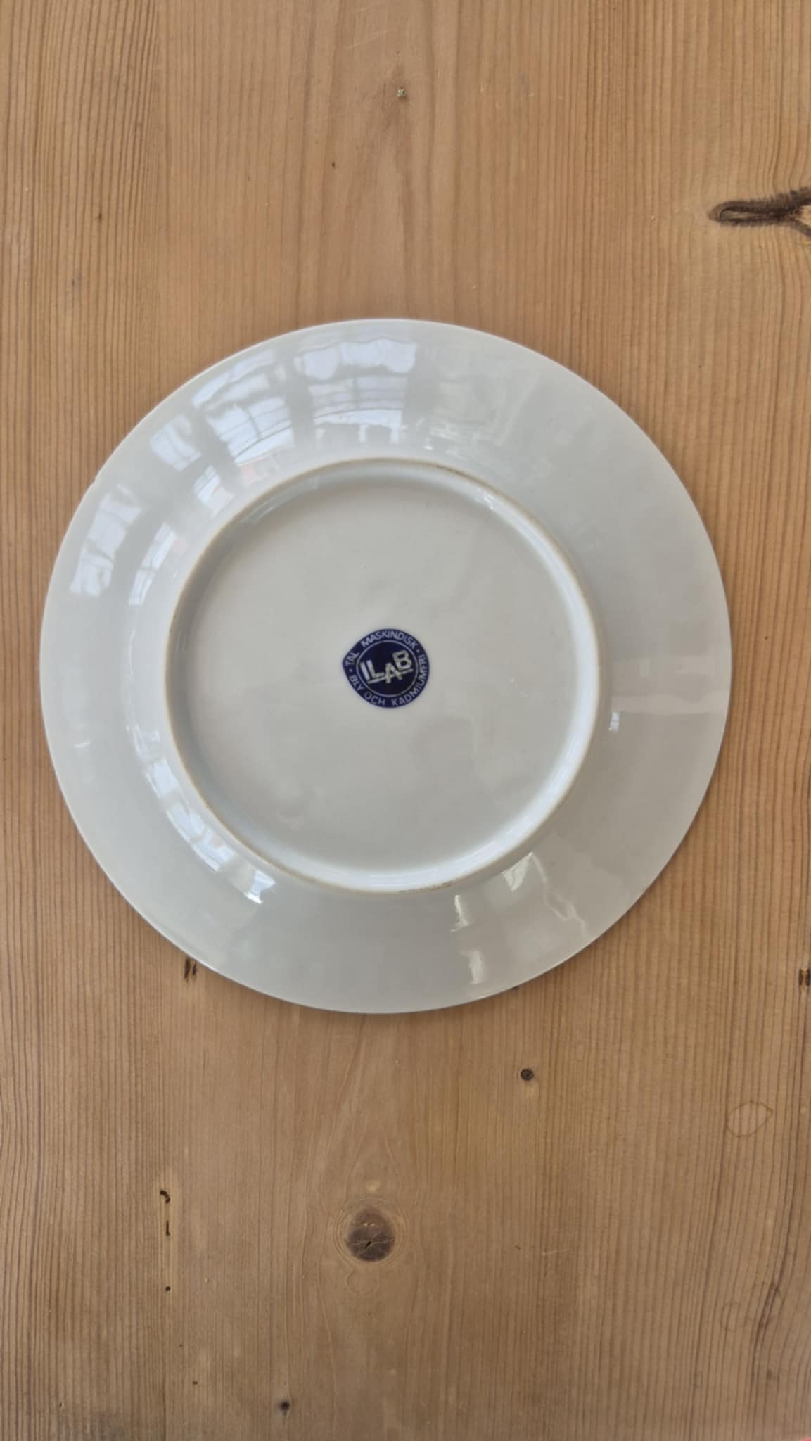 Blåvita assietter med fantastiskt vackert blommönster. Märket är ILAB. Två micronagg på baksidan. Syns inte på framsidan. I övrigt fint skick. Pris för 4 stycken.