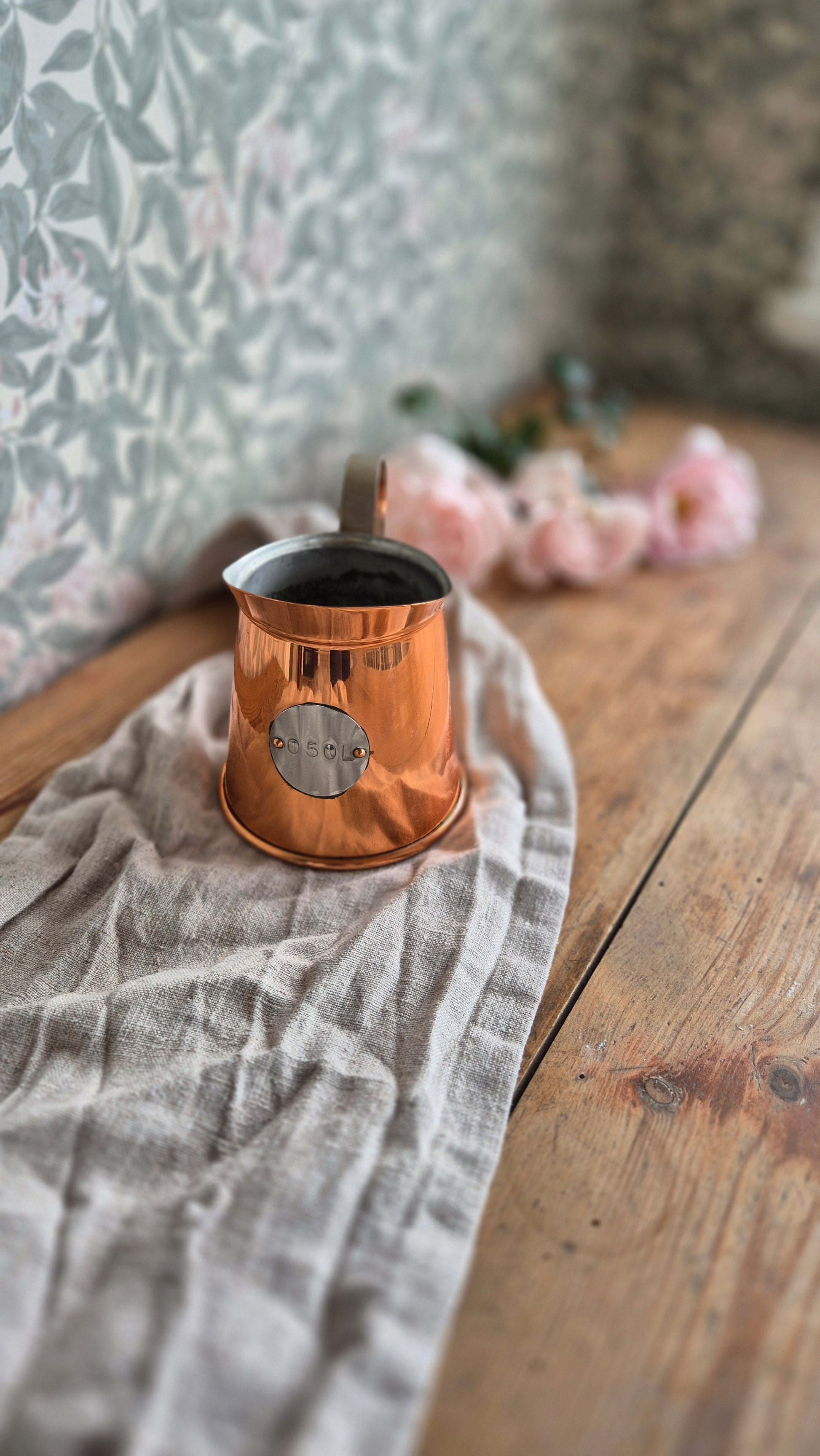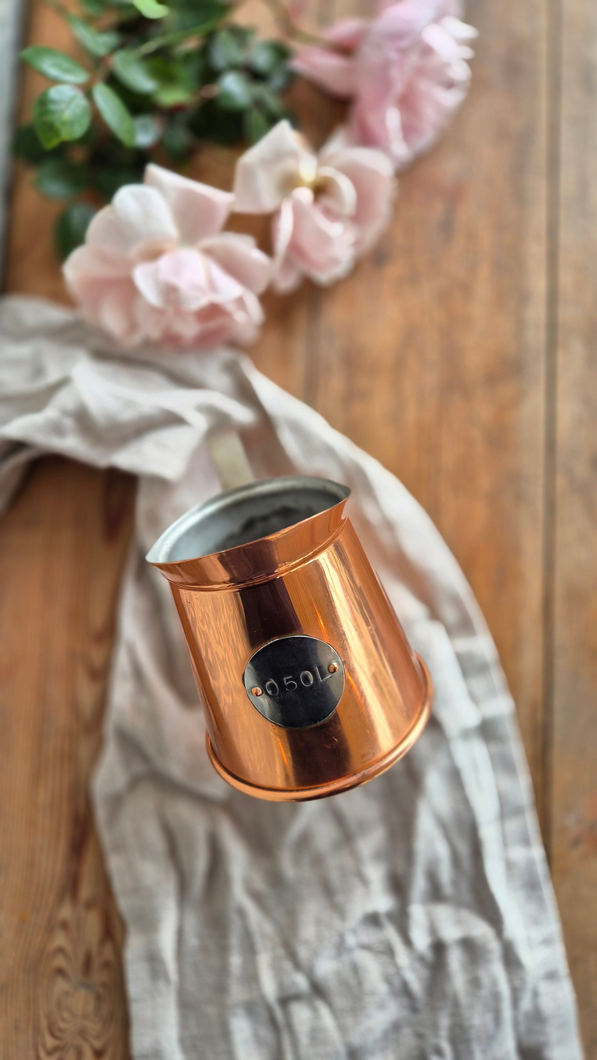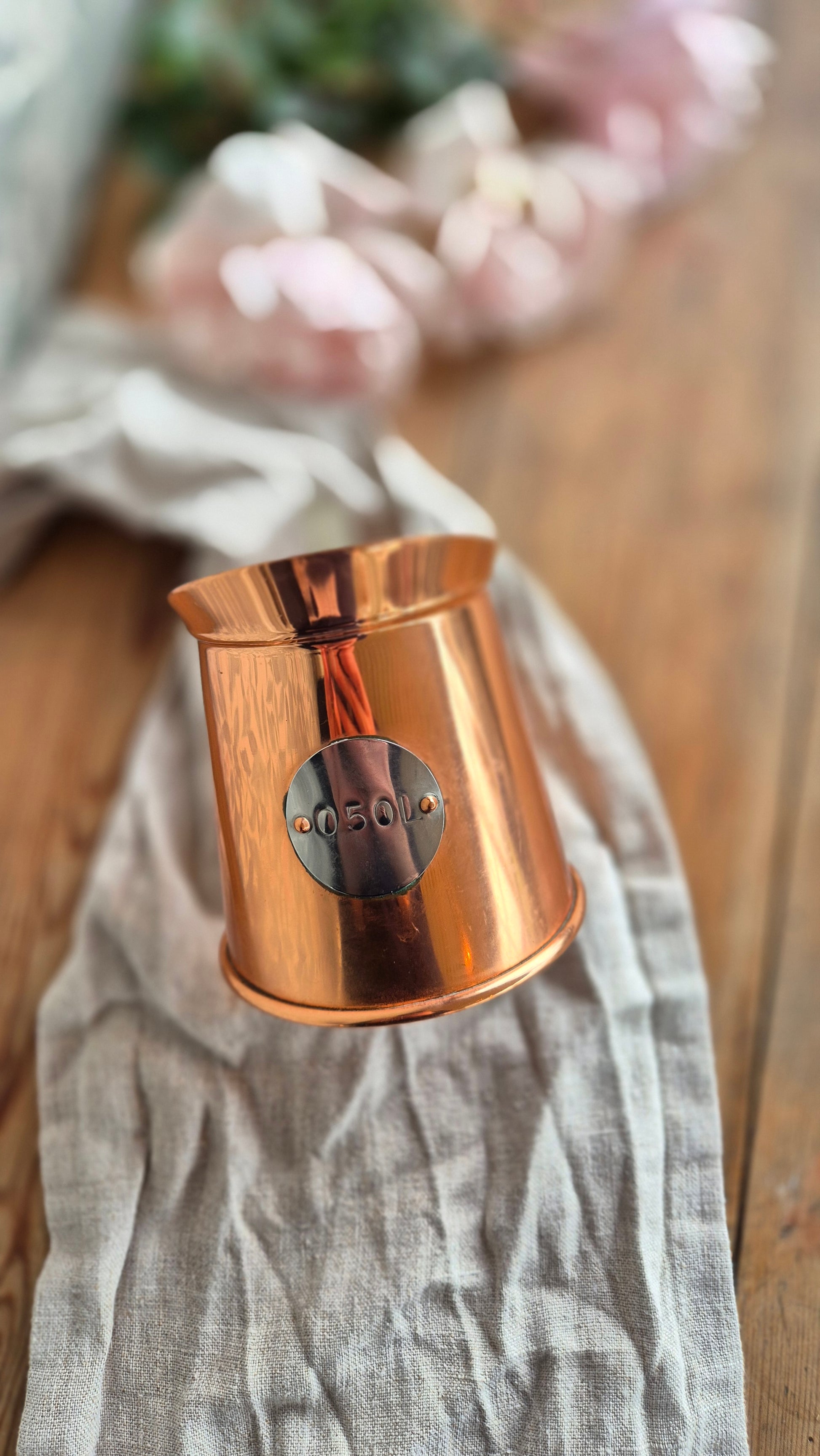 Fint decilitermått i koppar. Både praktiska och vackra detaljer till köket. Fint skick.