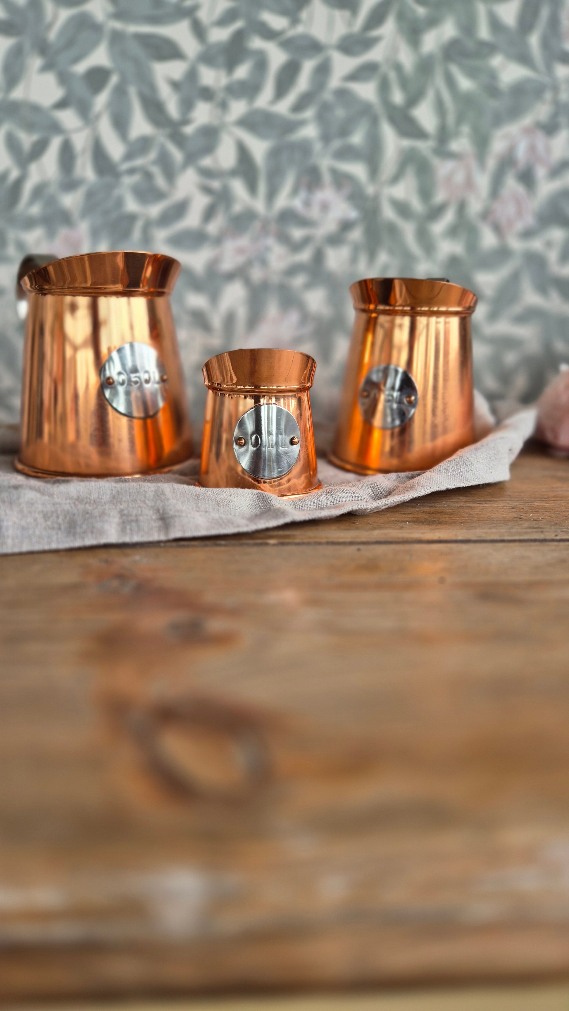 Fint decilitermått i koppar. Fint och praktisk detalj i köket. Fint skick.