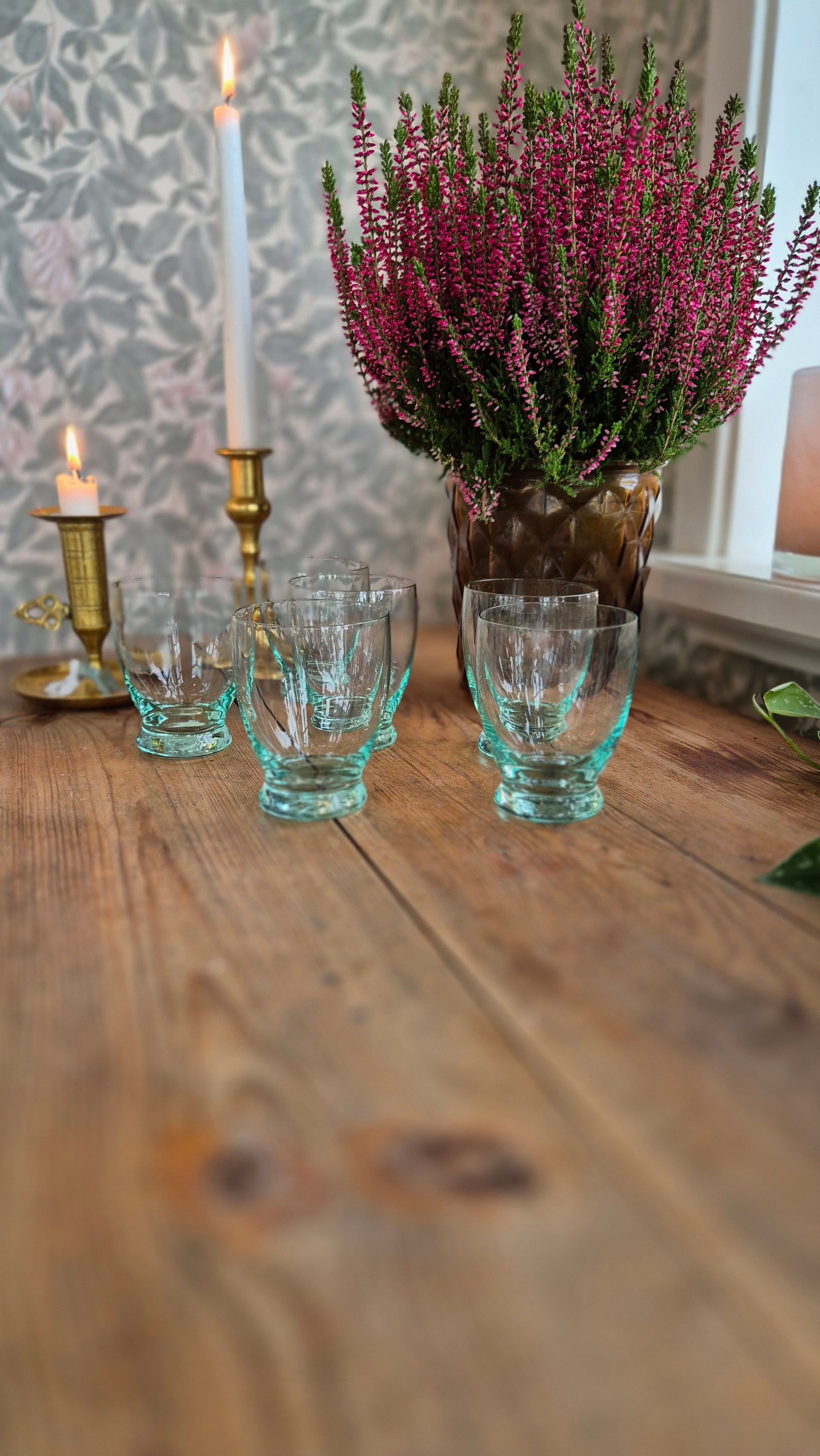 Fina dricksglas i grönt tunt glas. Fint skick. Säljs i set om 6 stycken.