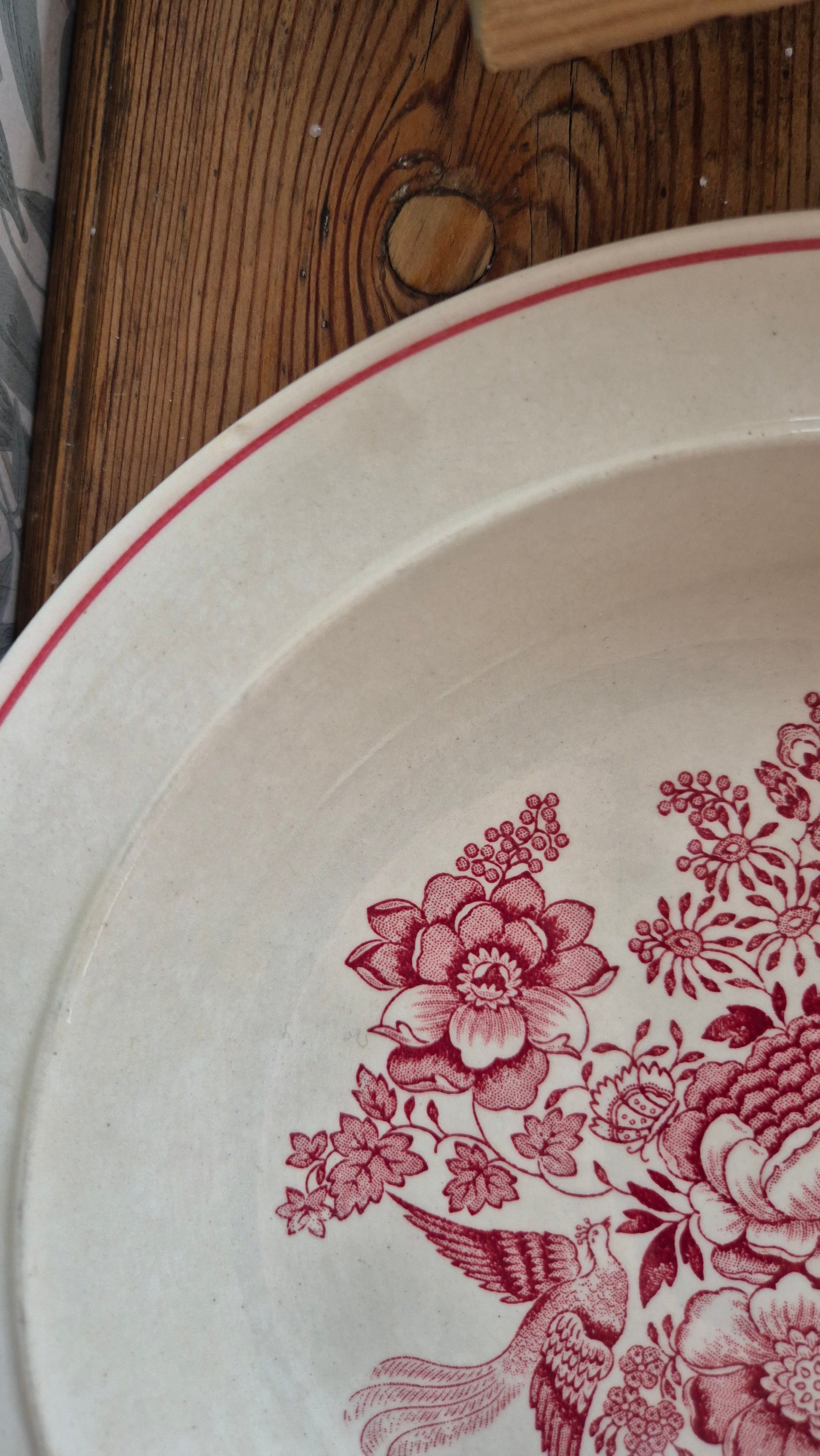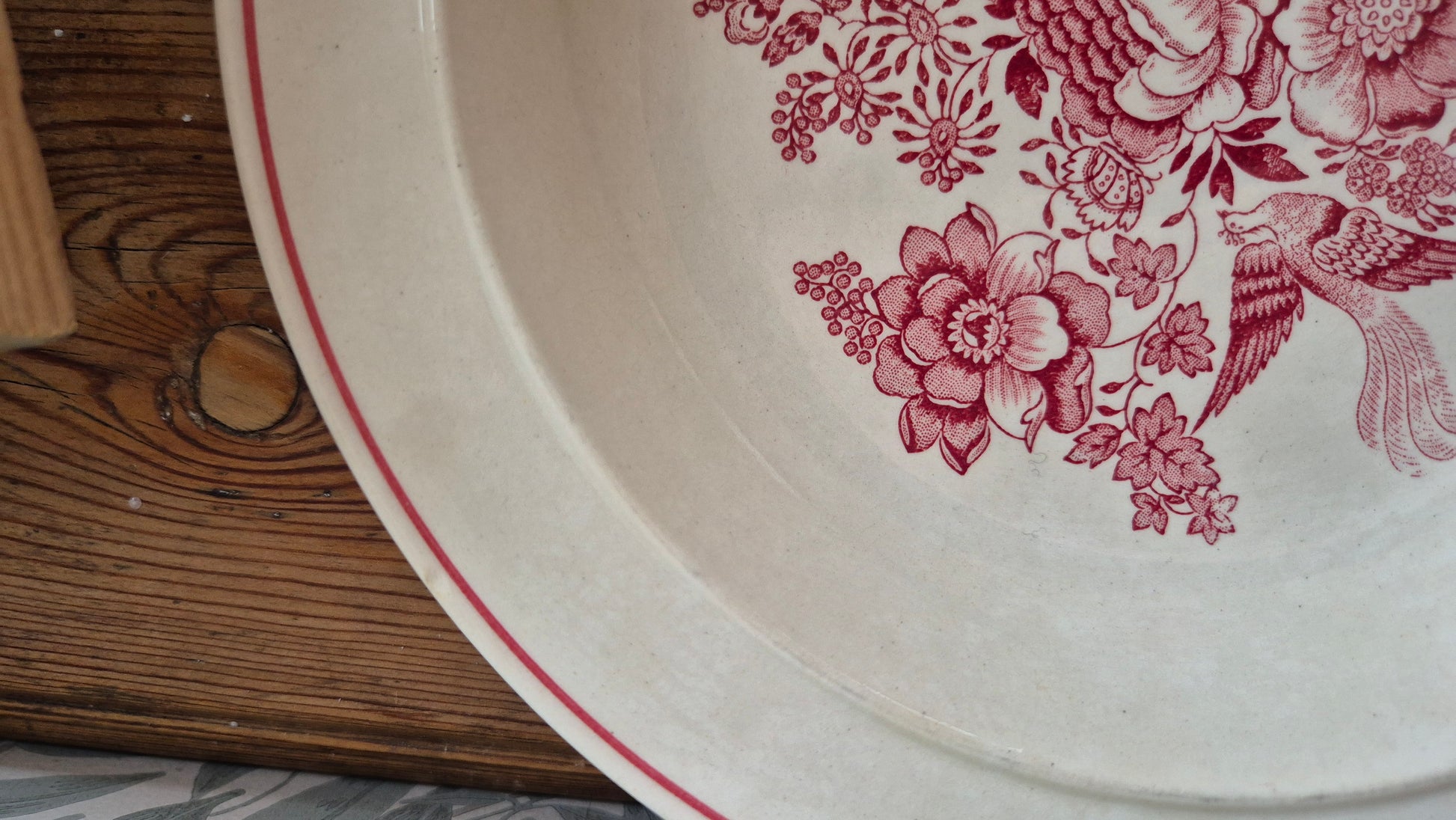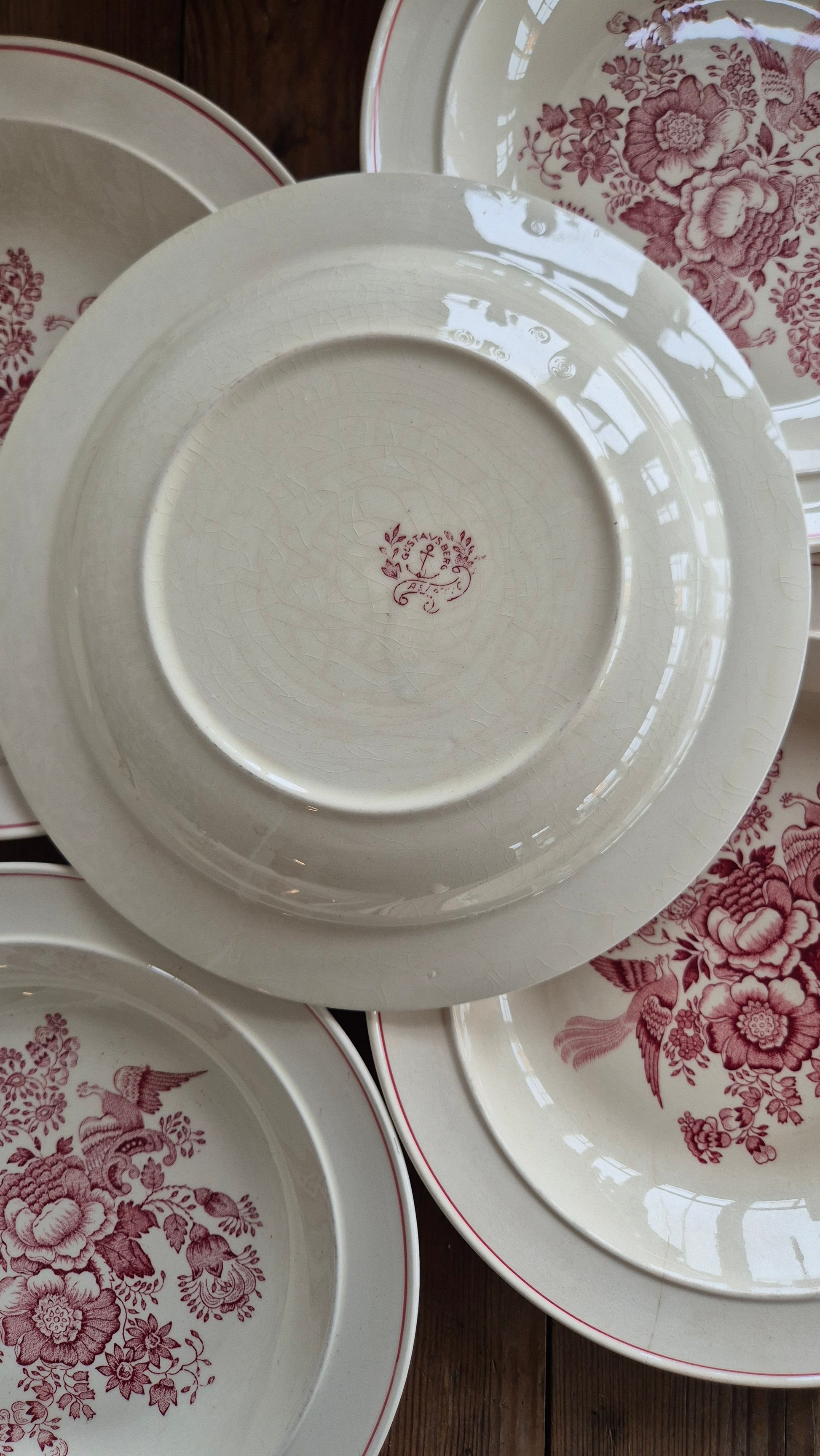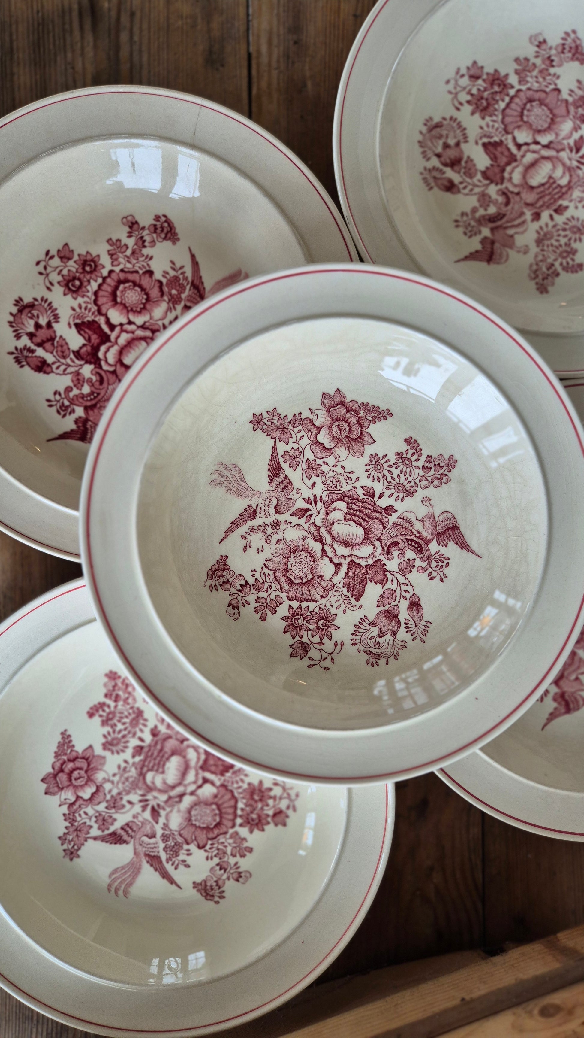 Vackra gamla djupa tallrikar från Gustavsberg med märket Fasan. Otroligt fin dekor. Ett micronagg finns på en tallrik. Knappt synbart. Krackeleringar förekommer och viss gulnad på en eller flera tallrikar. Porslinet har i sig en jämn gulnad. En tallrik har en spricka. Fint skick för sin ålder. Säljs styckvis. Välj hur många du önskar köpa.