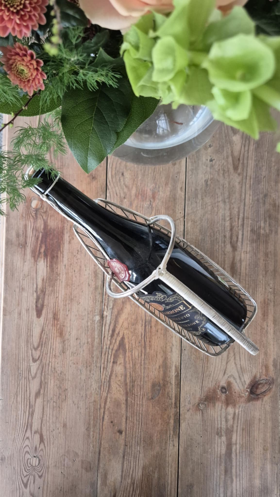 Flaskhållare i nysilver med vackra detaljer. Praktisk och fin dekoration till det dukade bordet. Fint skick.