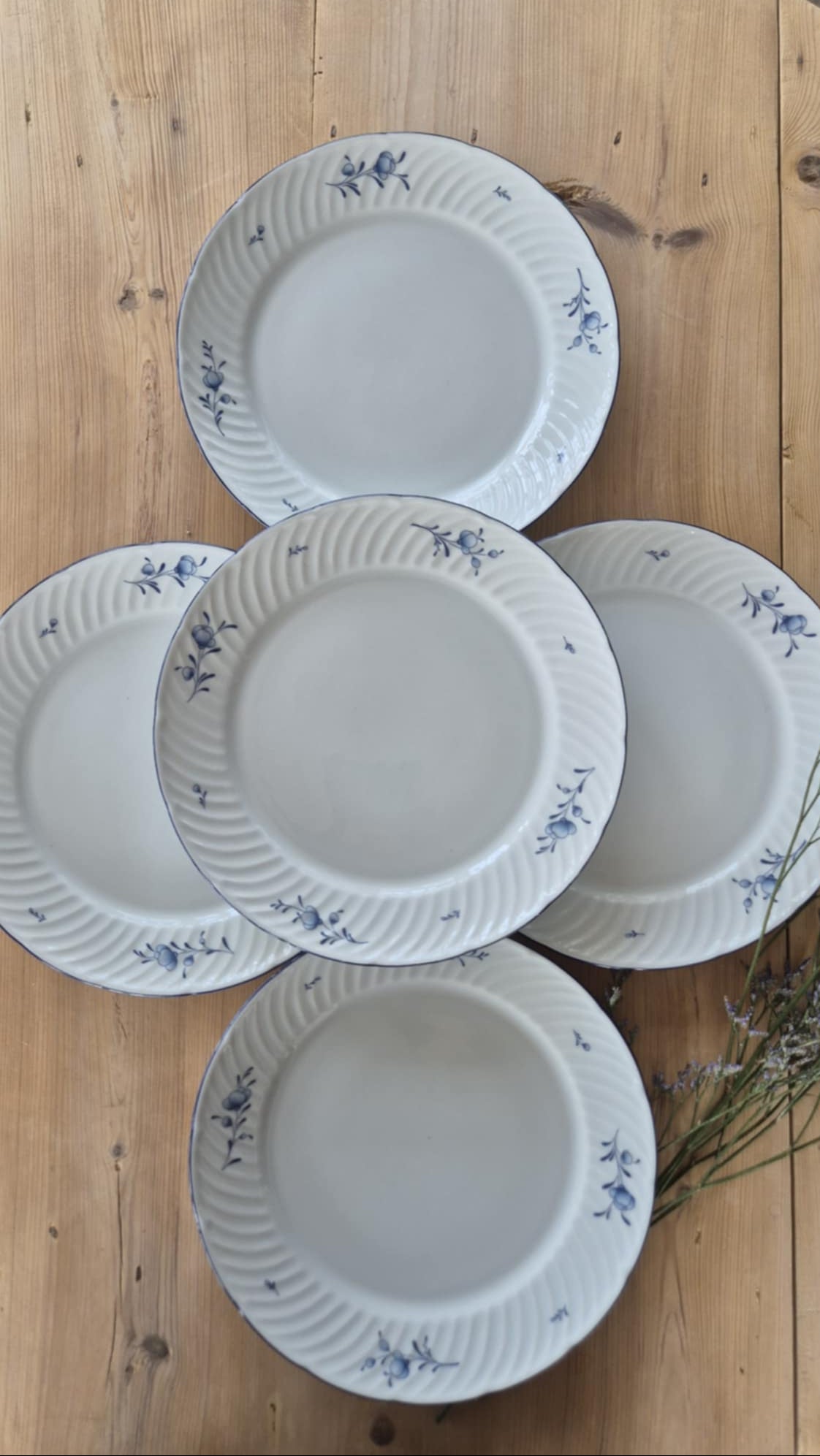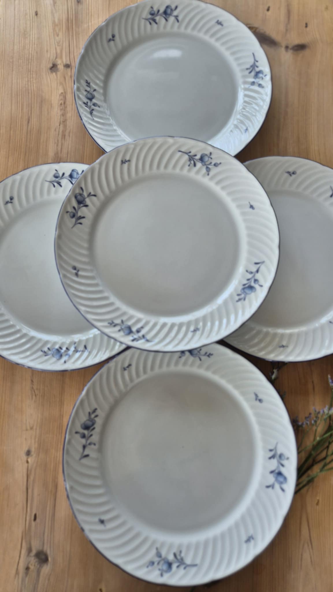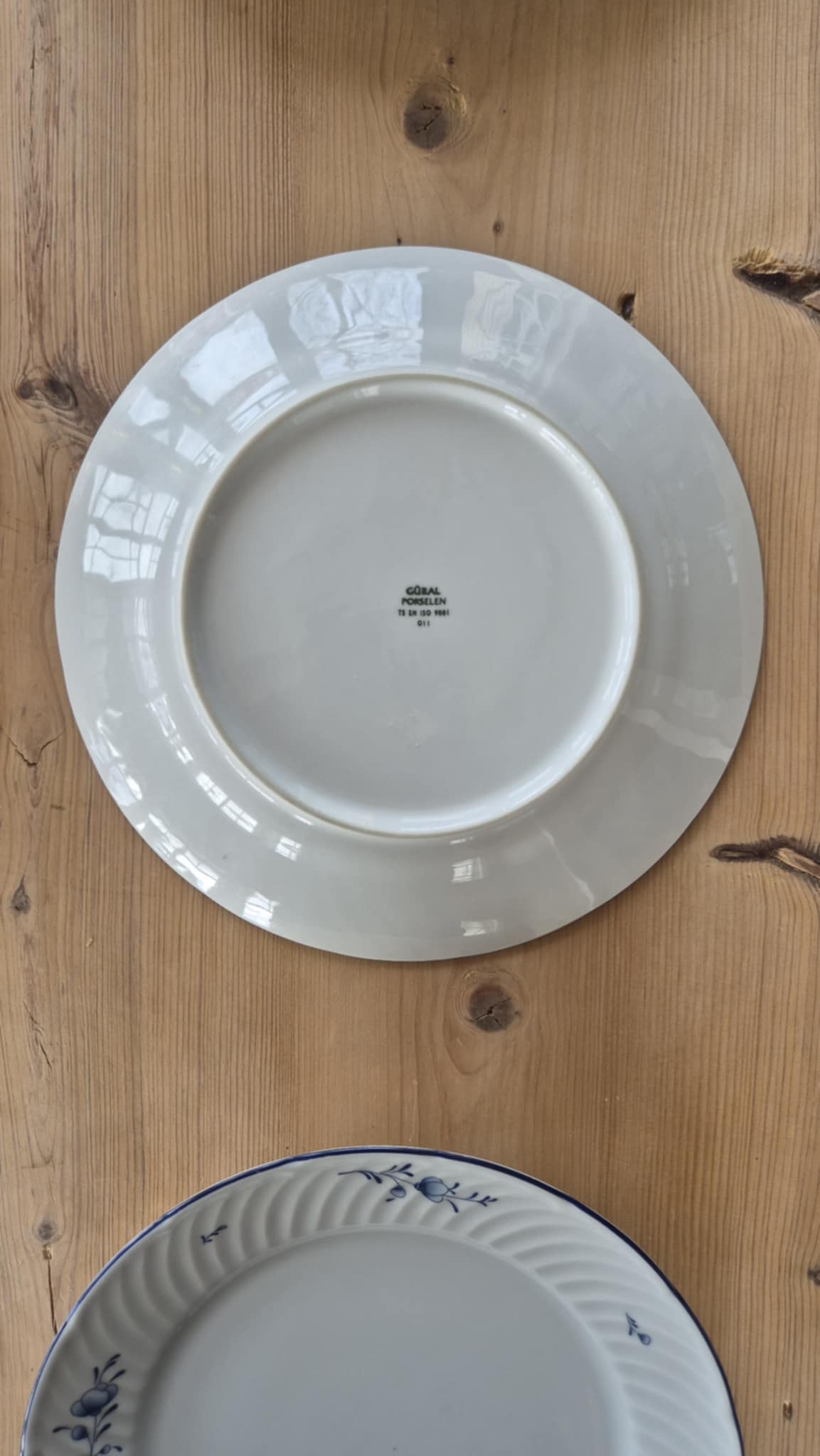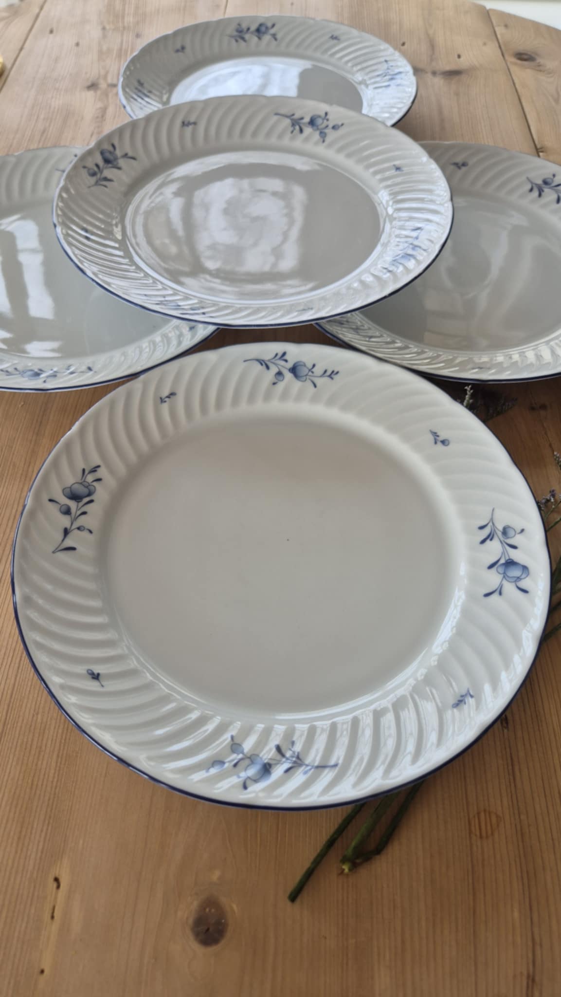 Blåvita tallrikar med vacker blomdekor i tidlös design. Fint skick. Små bortfall av den blå kanten runt om kan förekomma vid noga syning. Ej nagg. OBS! Tallrikarna säljs styckvis. Välj hur många du önskar.