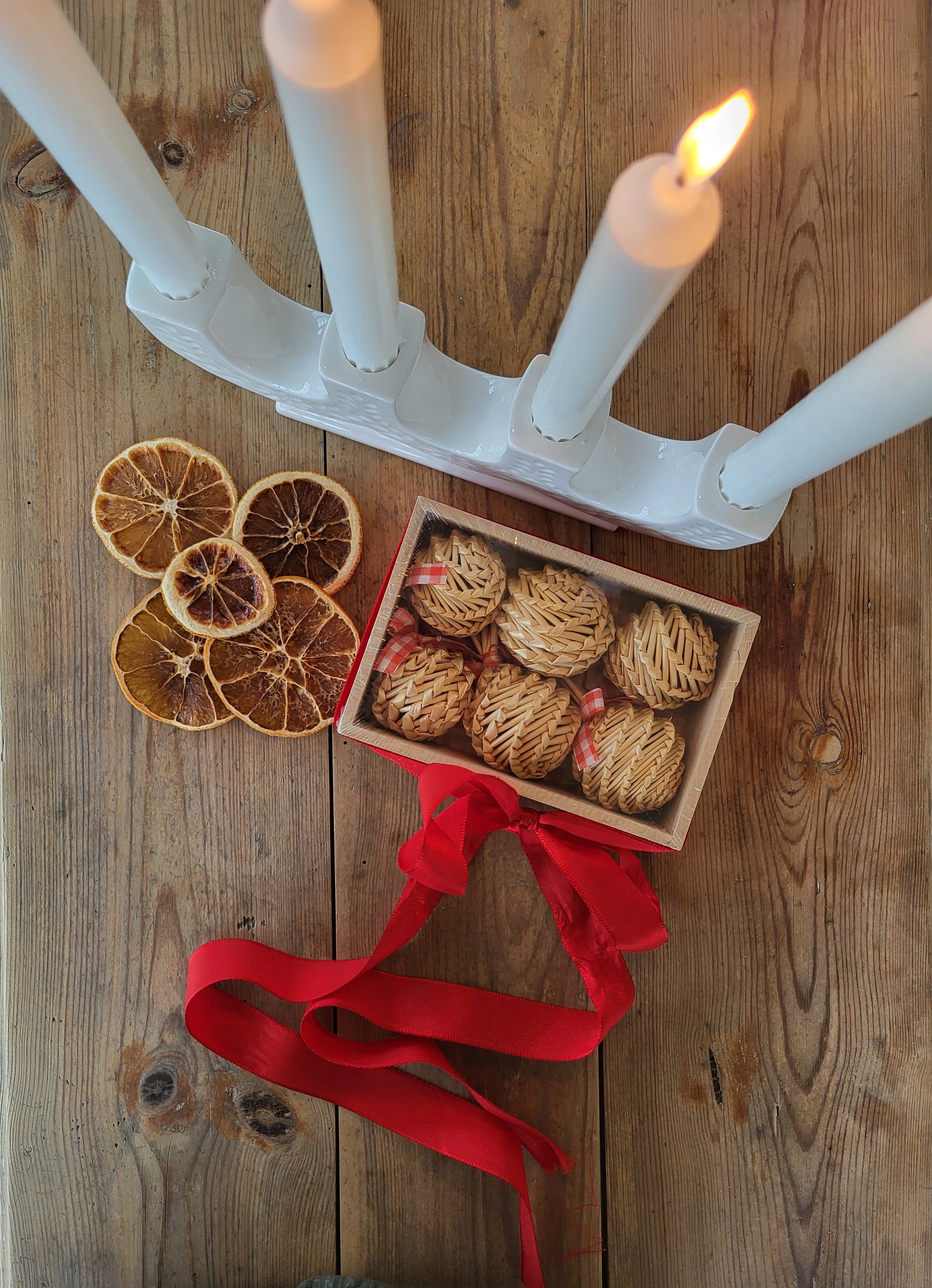 Fina bollformade halmhängen. Perfekta för att skapa en mysig julkänsla. Fint skick.