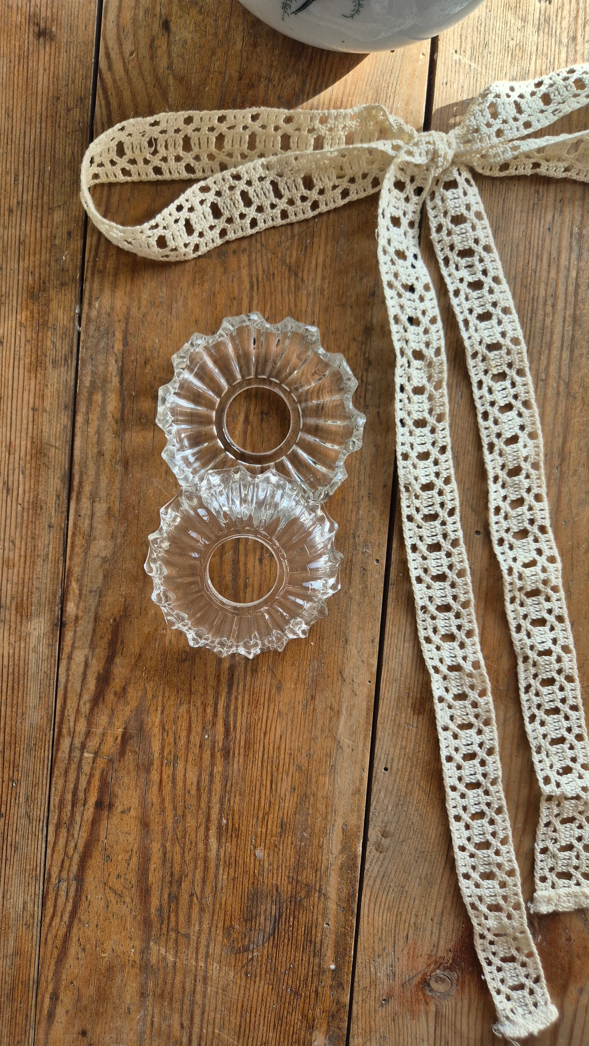 Ljusmanschetter i glas för kronljus. Fint skick. Säljs i set om 2 stycken.