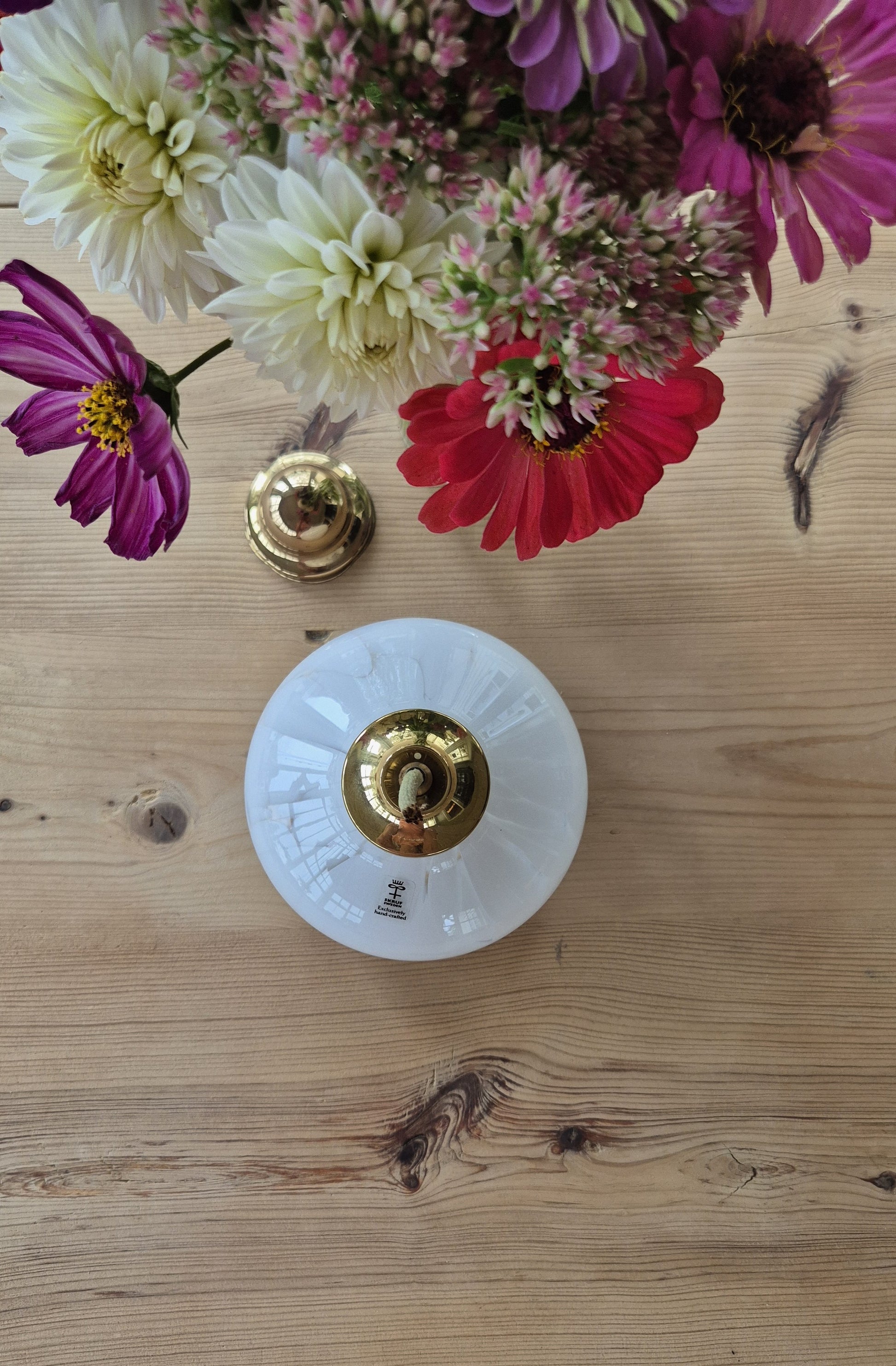 Fin handgjord oljelampa perfekt att placera i ett fönster eller på ett bord för extra mysfaktor. Märket är Skruf Sweden.