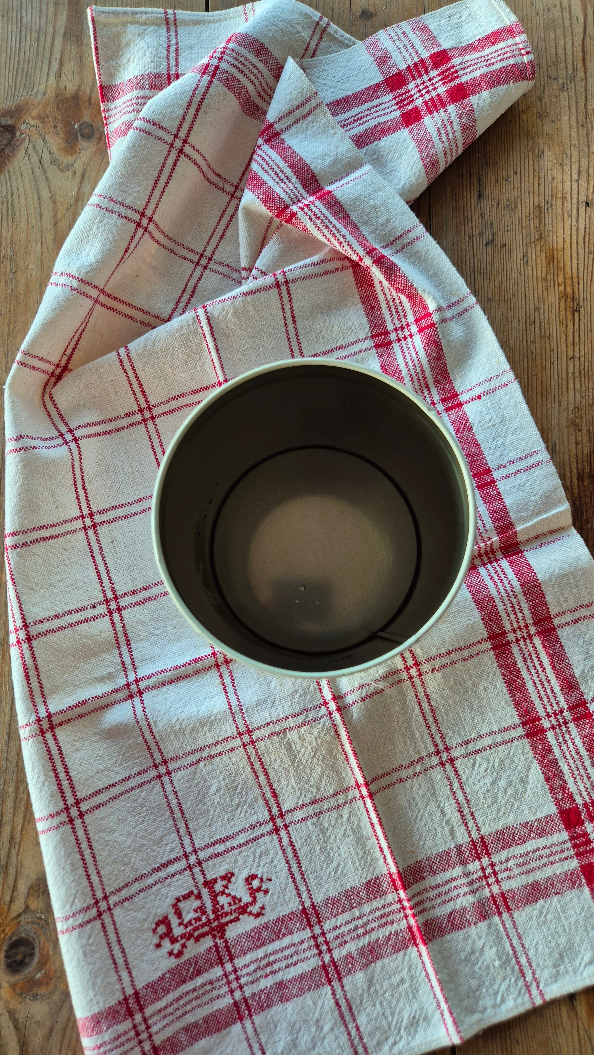 Vacker plåtburk med julmotiv av en flicka. Fint skick med mindre spår av användande.