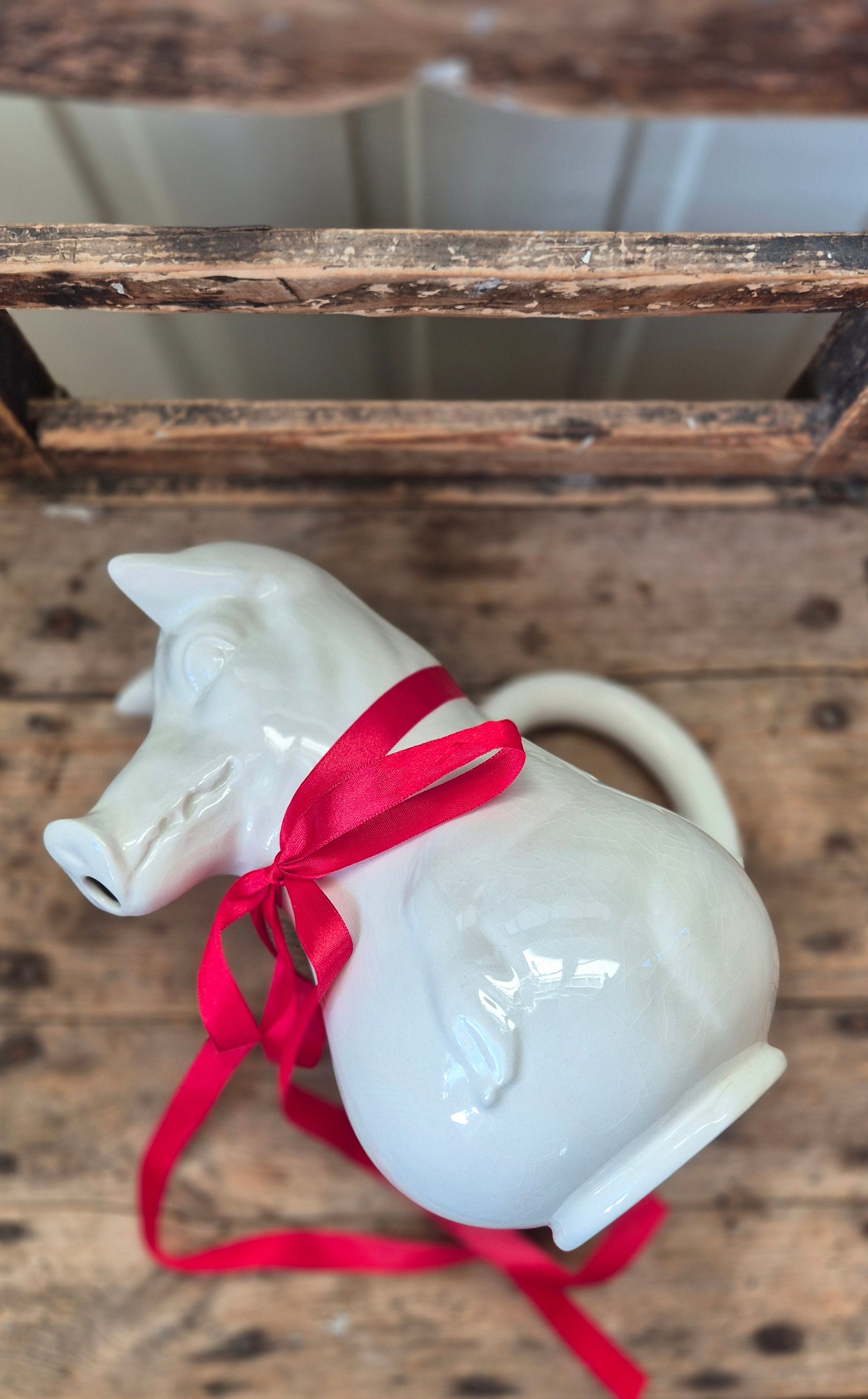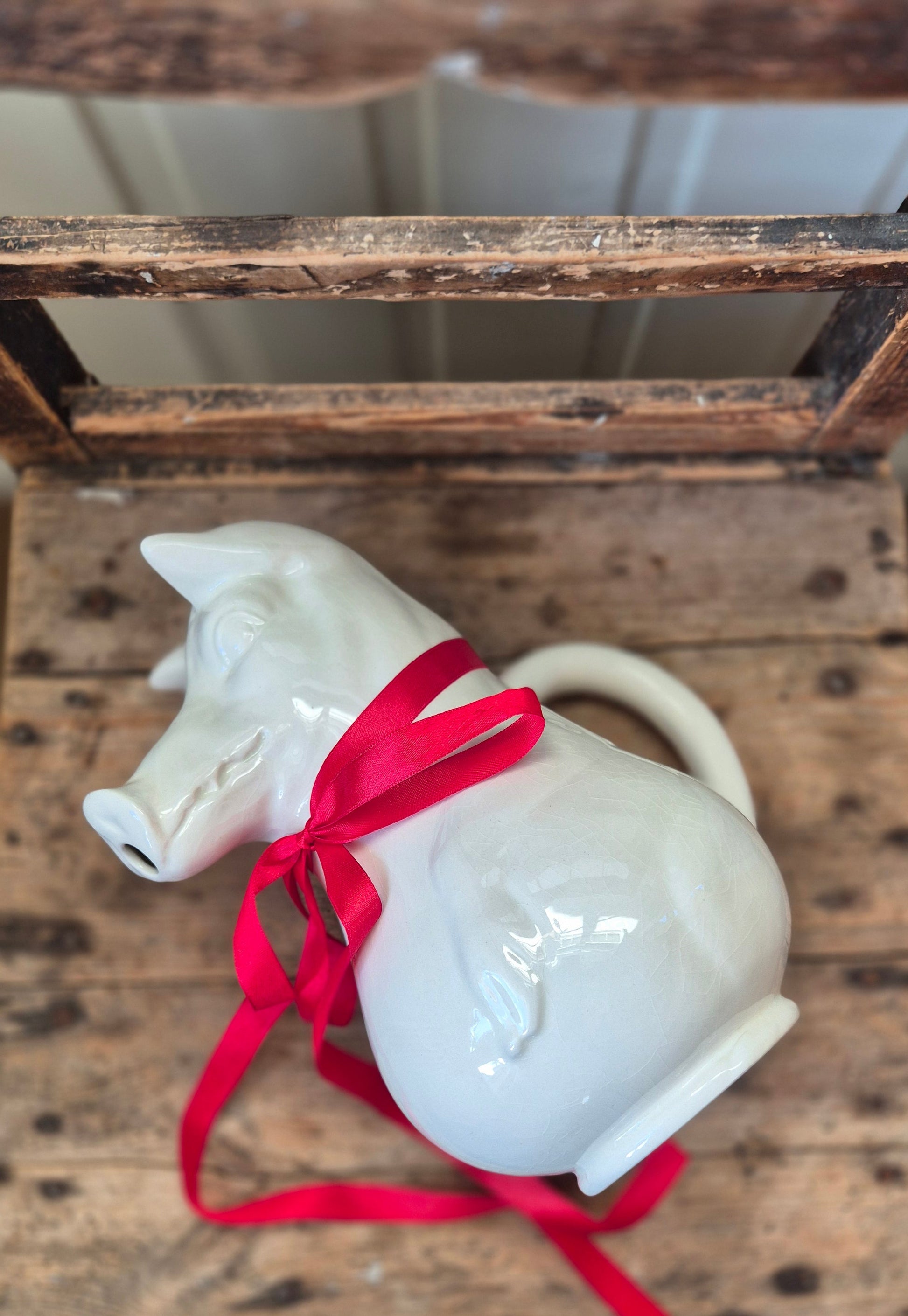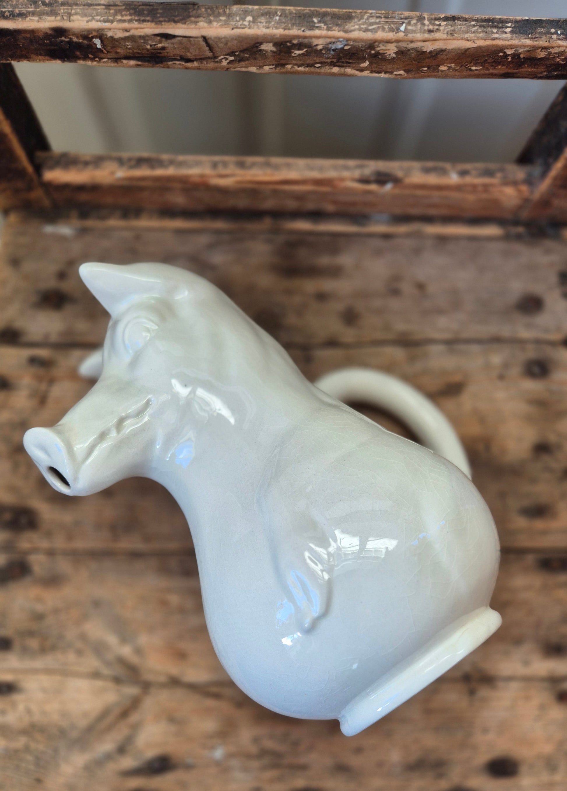 Vacker porslinskanna i form av en gris från märket Burleigh Ironstone Staffordshire England. Små fina krackeleringar förekommer. Fint skick.