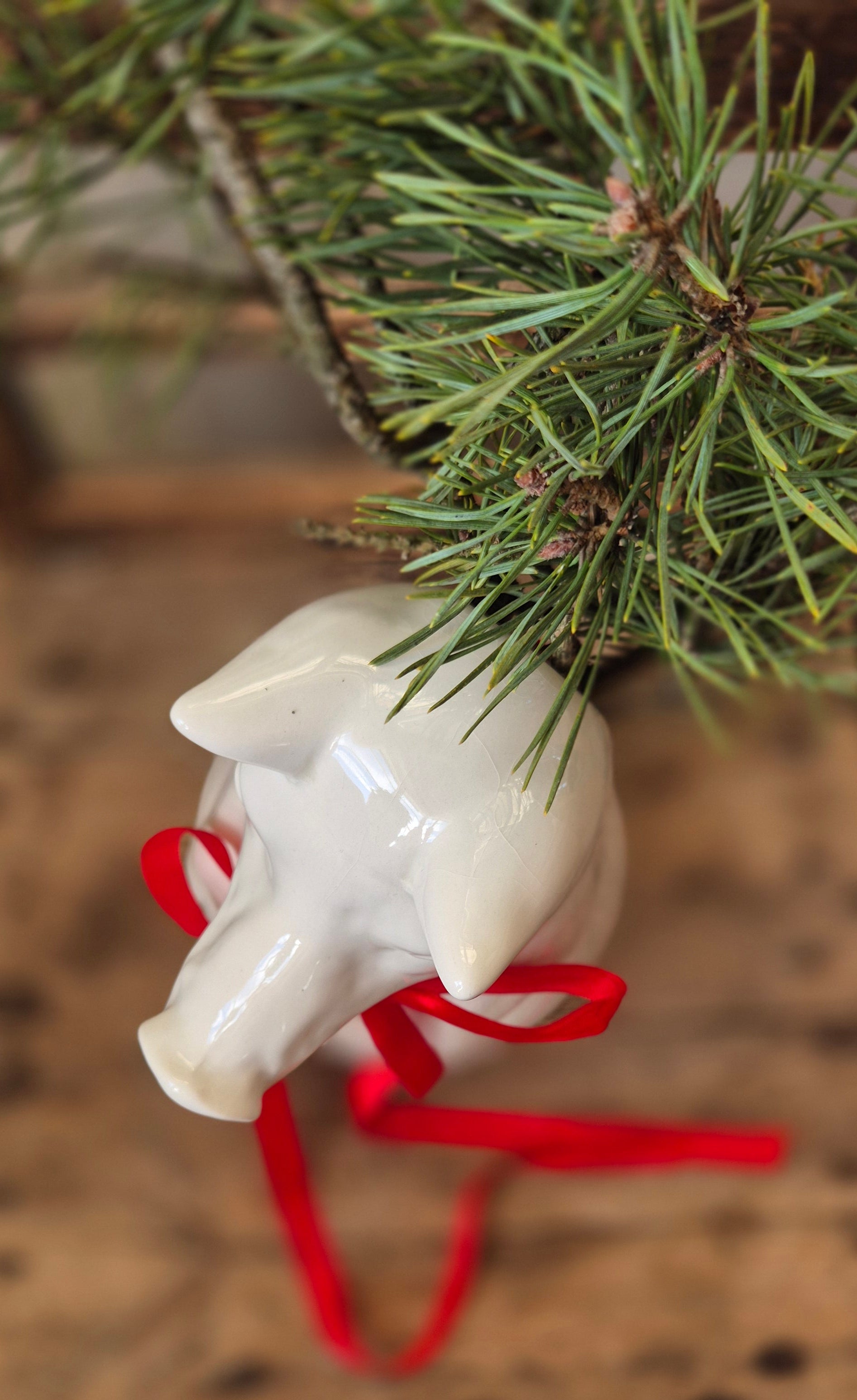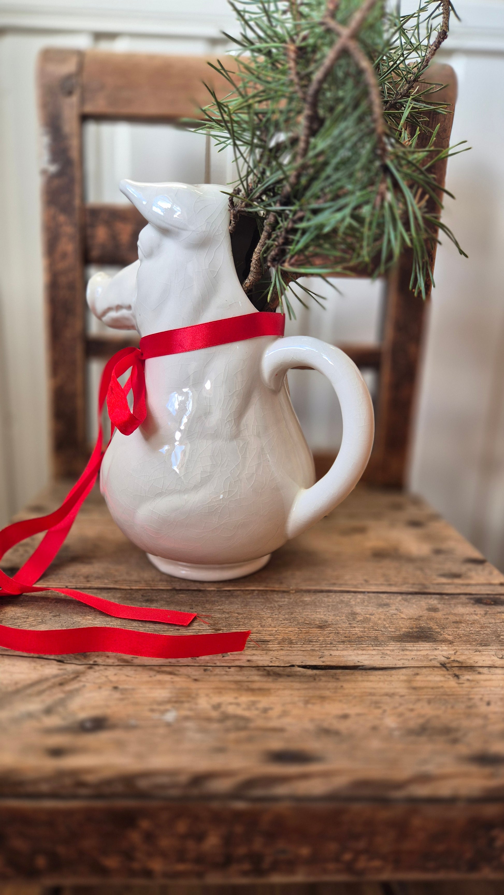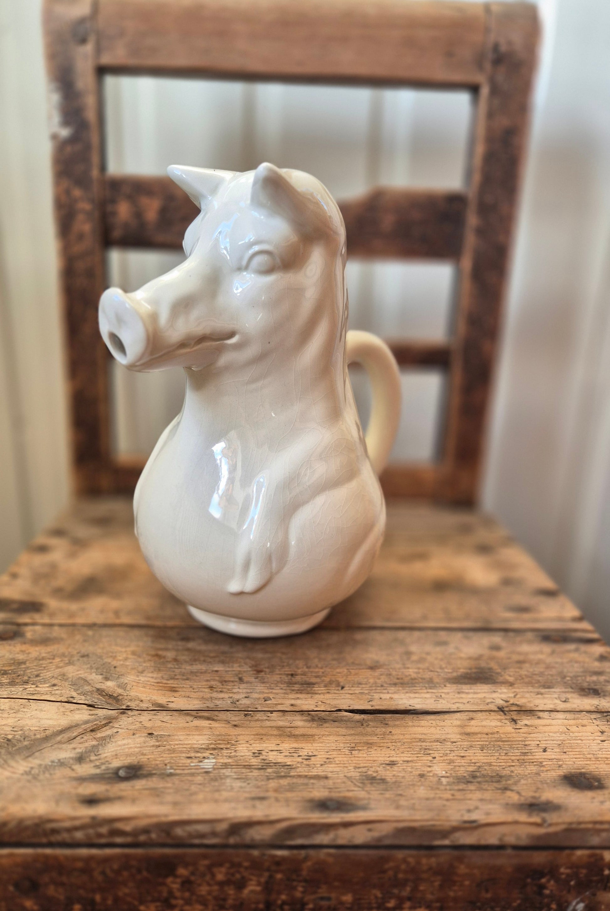 Vacker porslinskanna i form av en gris från märket Burleigh Ironstone Staffordshire England. Små fina krackeleringar förekommer. Fint skick.