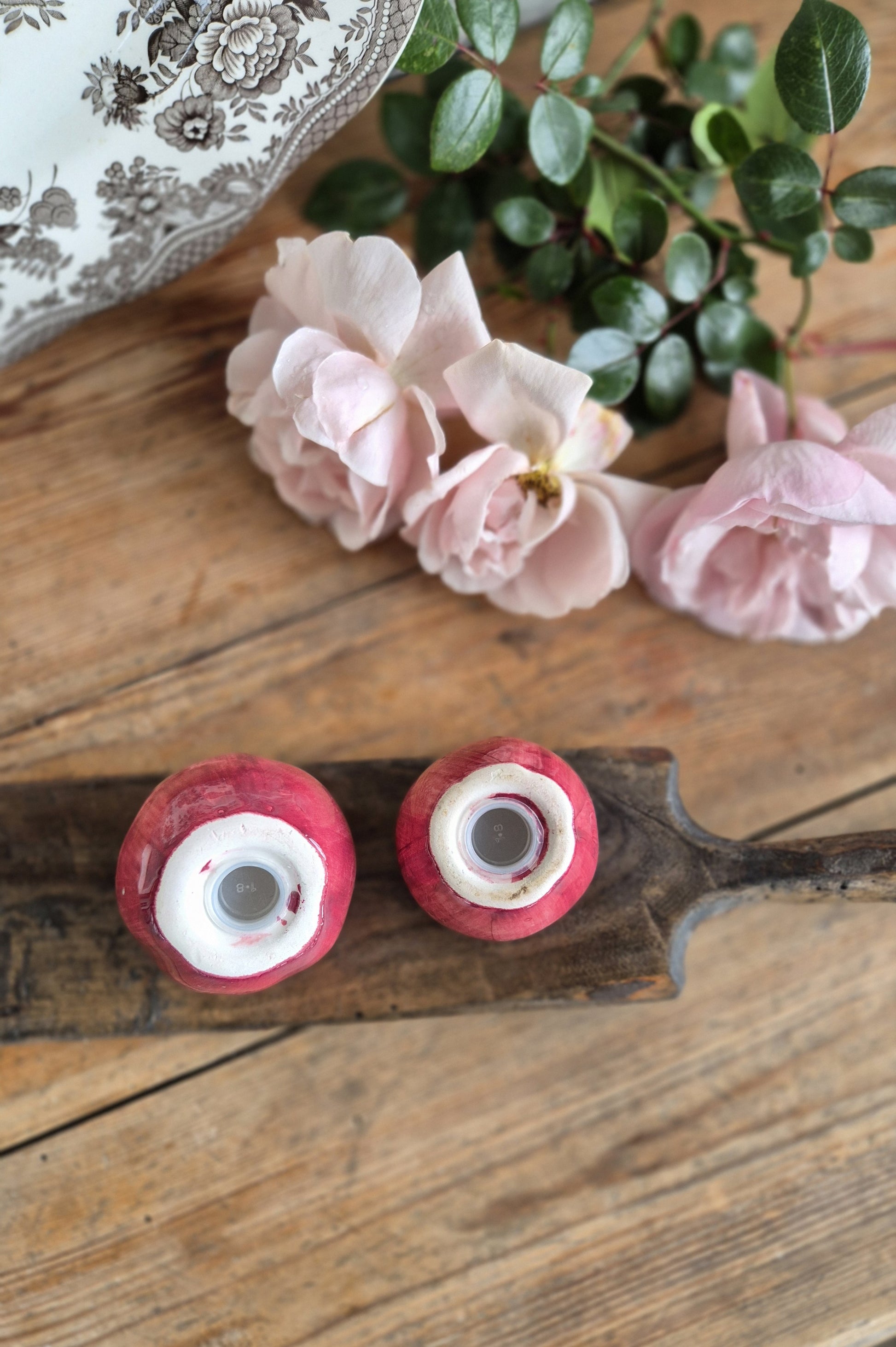 Salt- och pepparkar i porslin formade som äpplen. Ljuvlig inredningsdetalj och fina till det dukade bordet. Säljs som ett par.