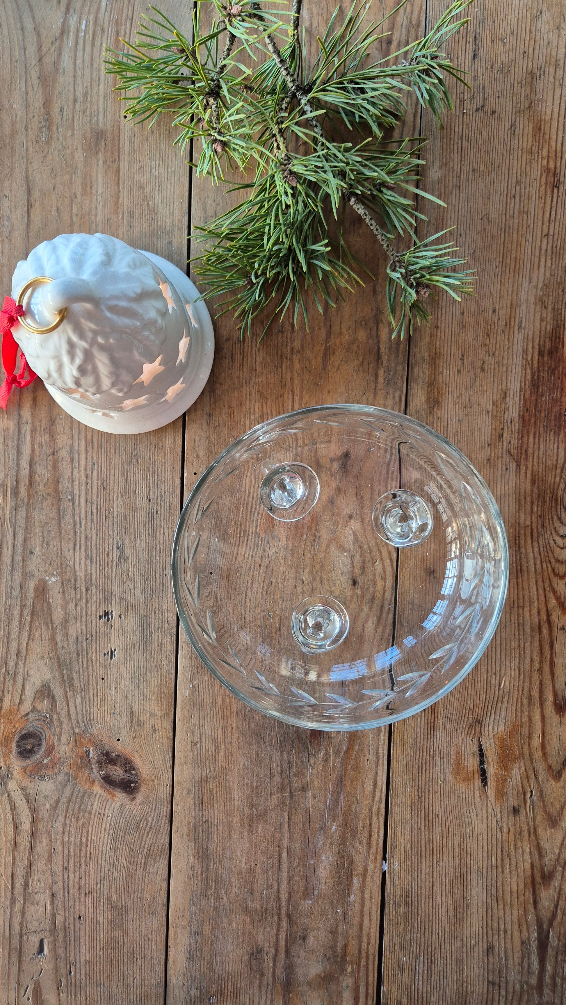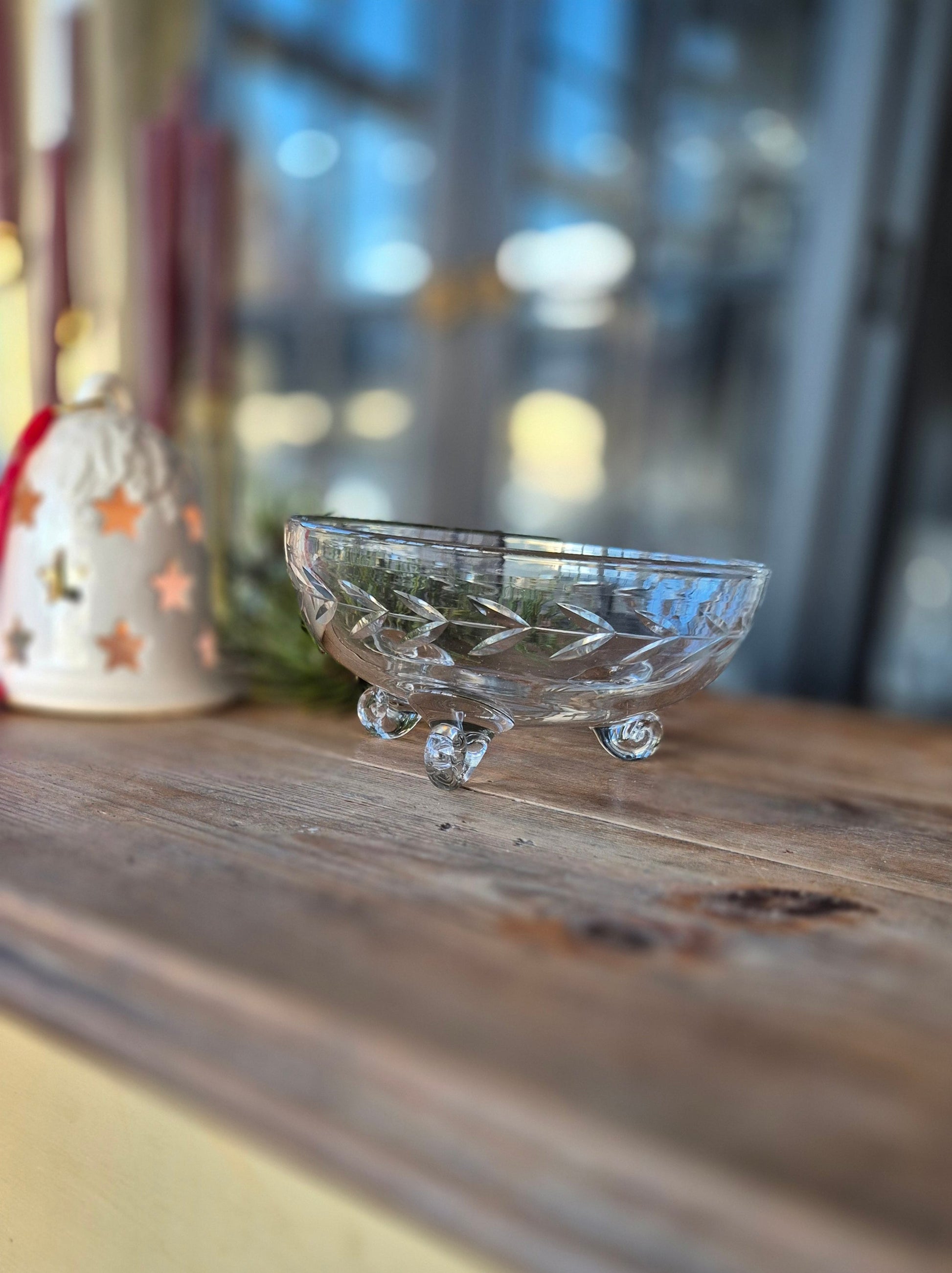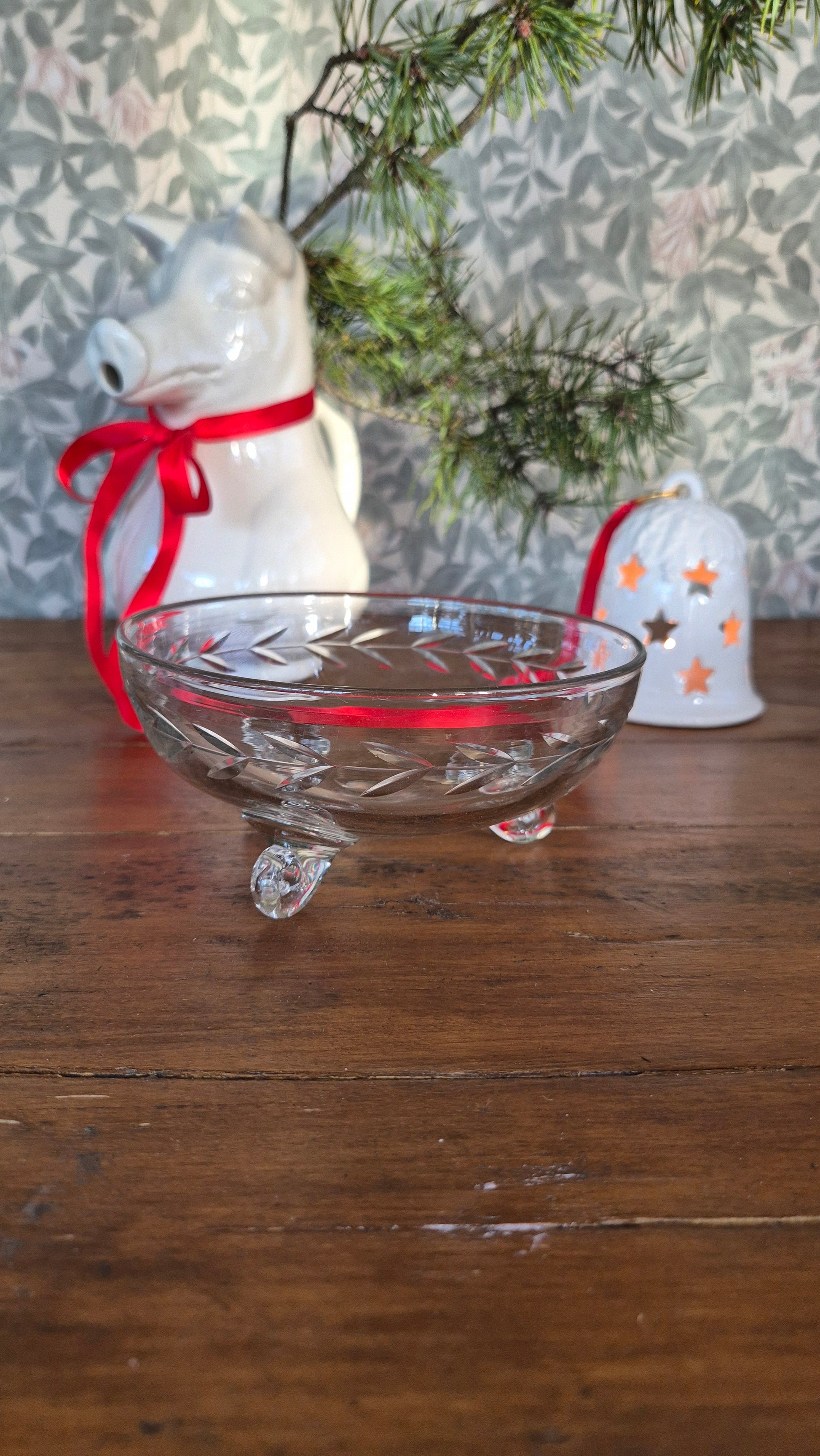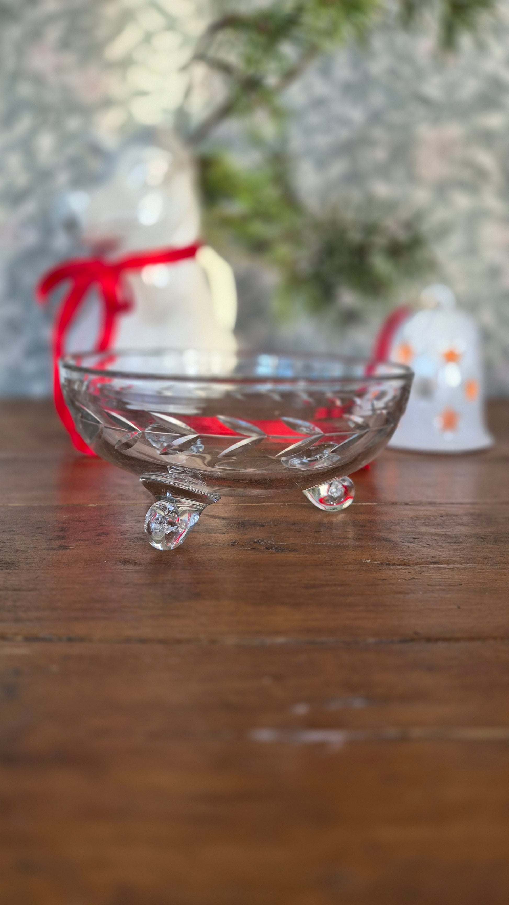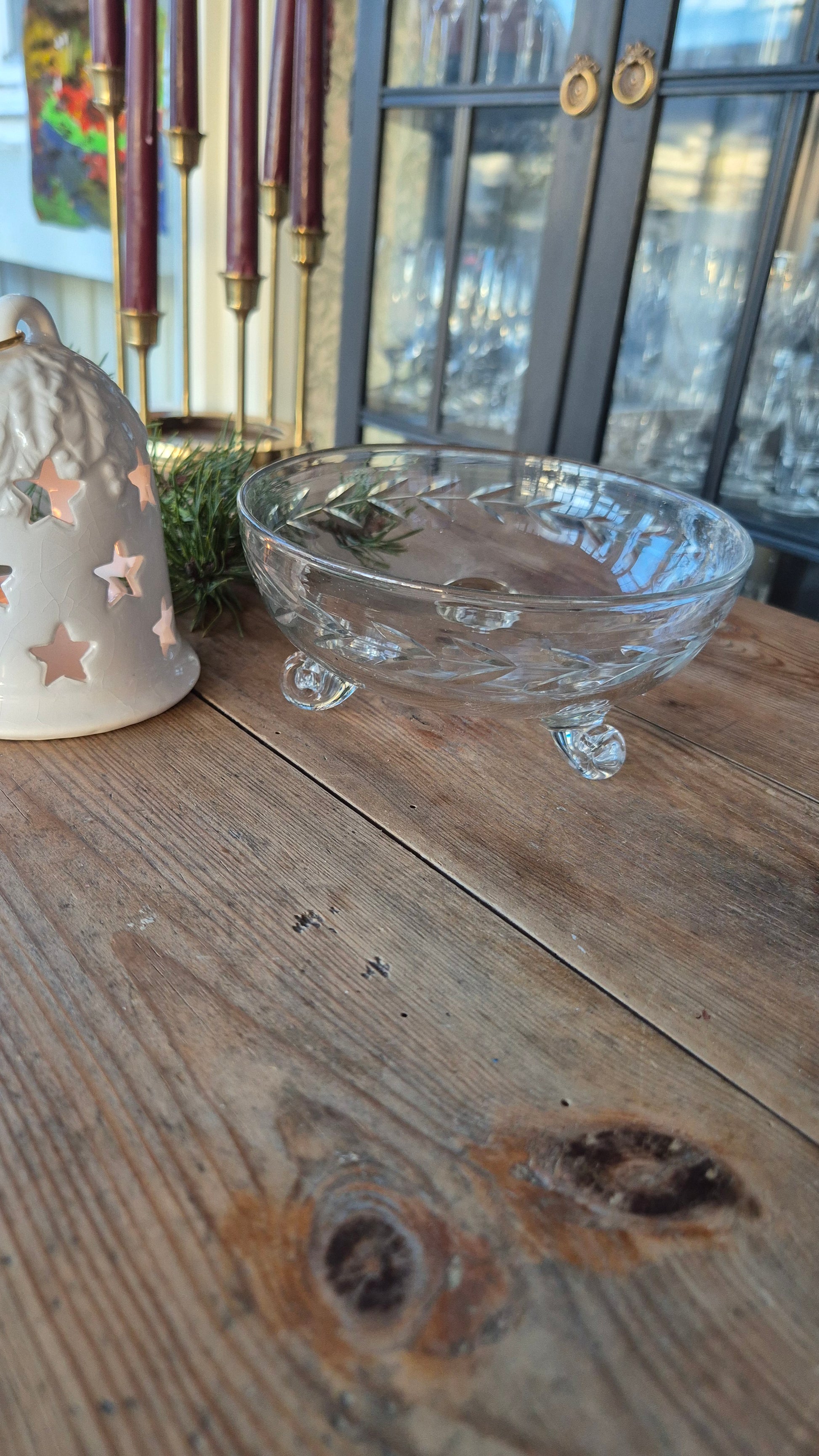 Söt skål i glas med tre tassar. Perfekt skål för godis, nötter eller andra godsaker. Fint skick.