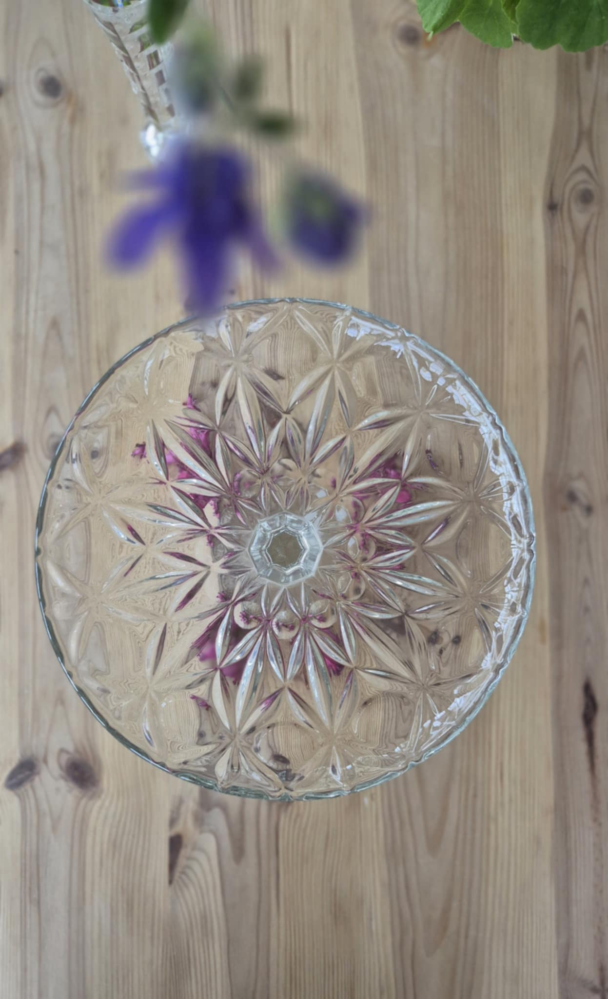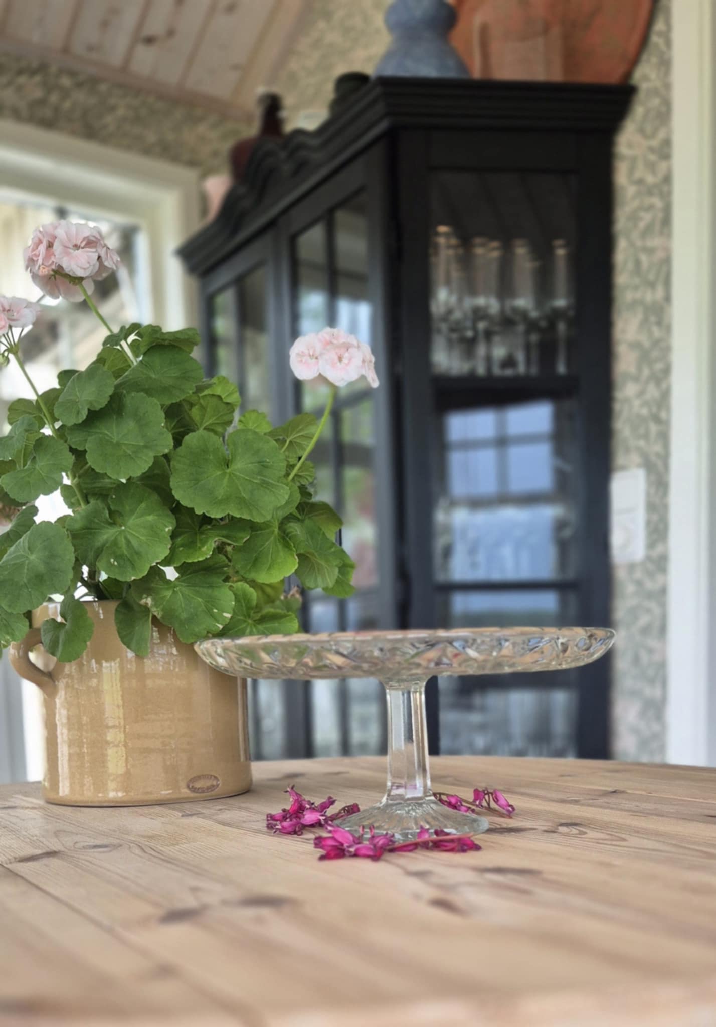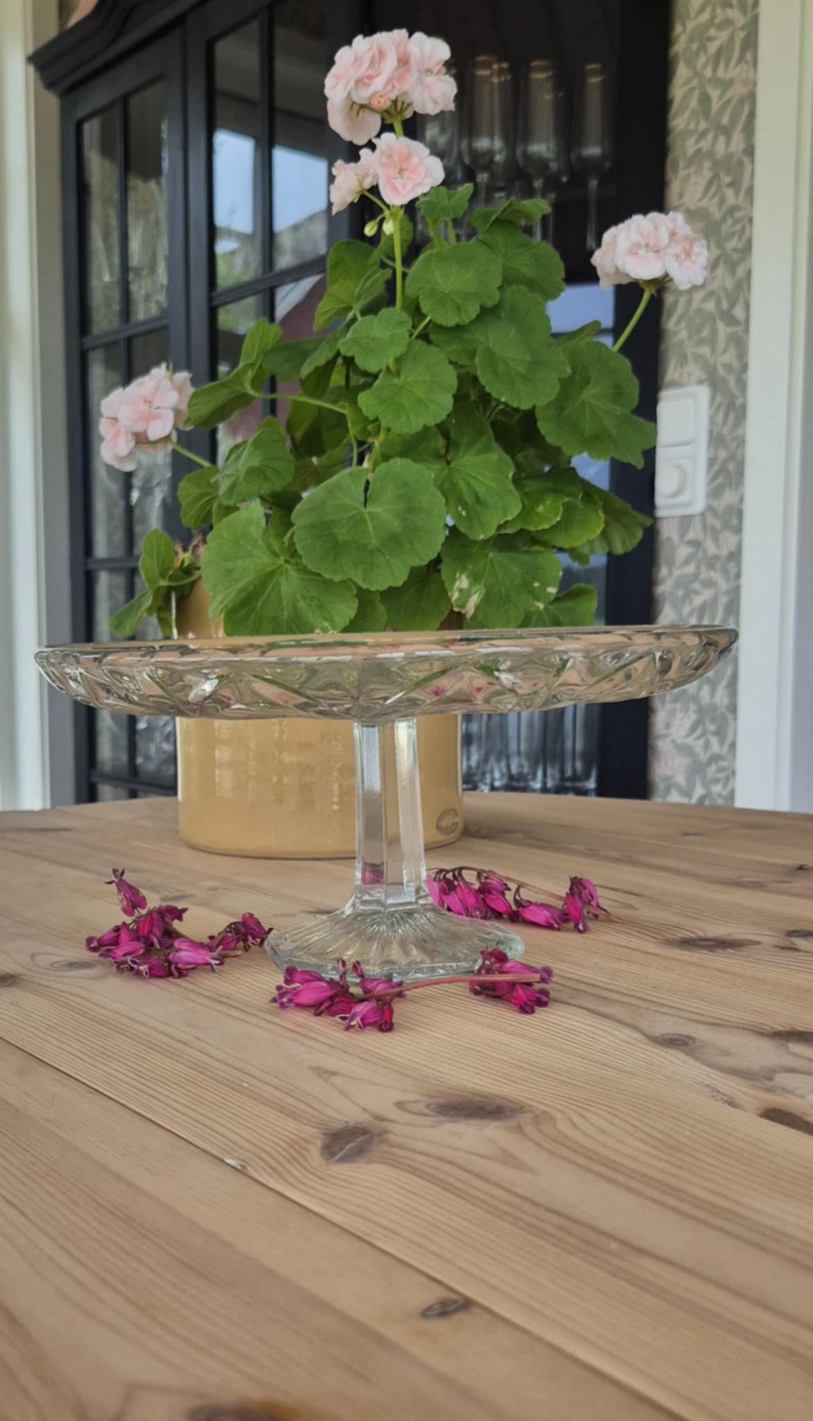 Vackert mönstrat tårtfat på fot. Perfekt till jordgubbstårtan. Fint skick.