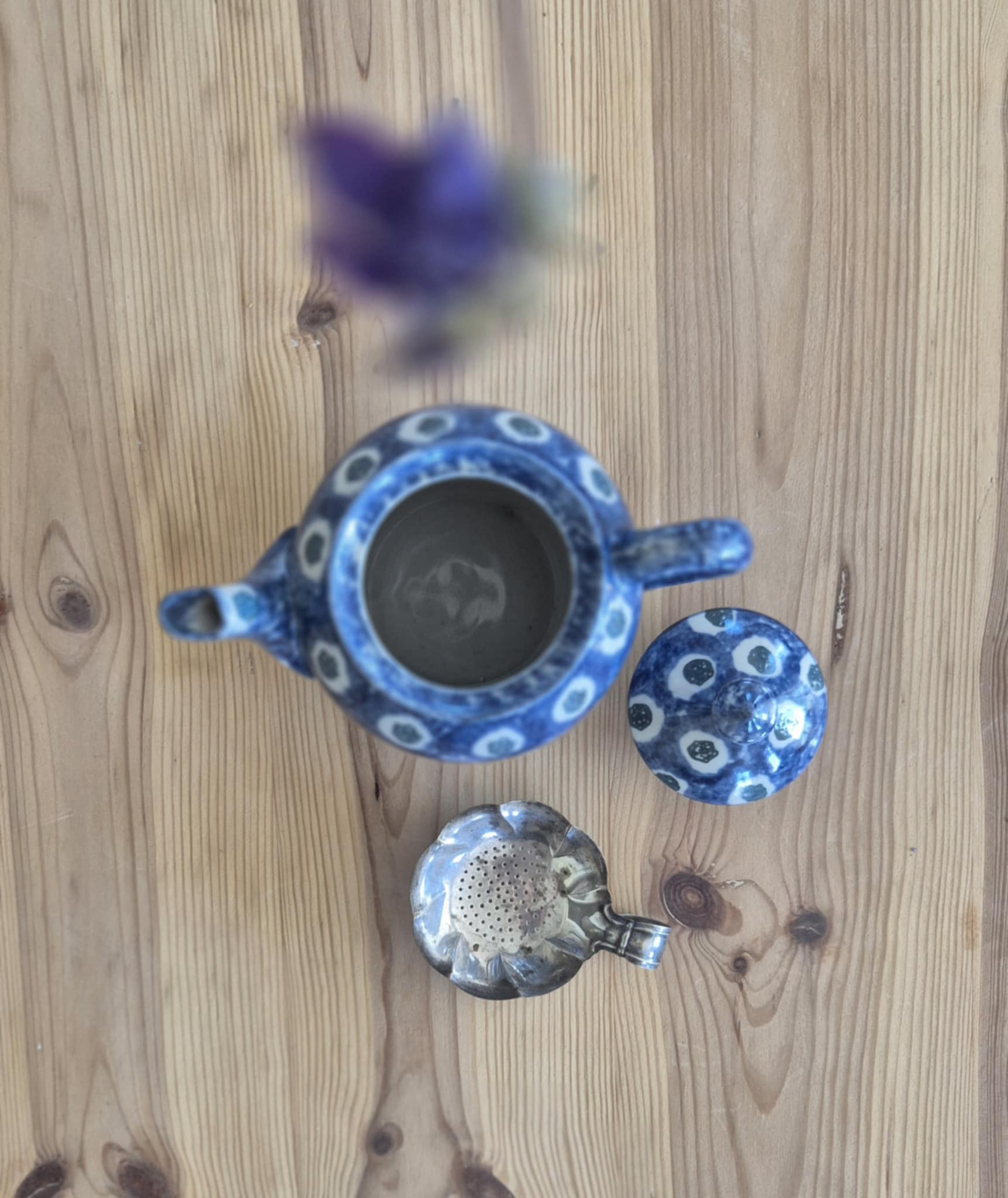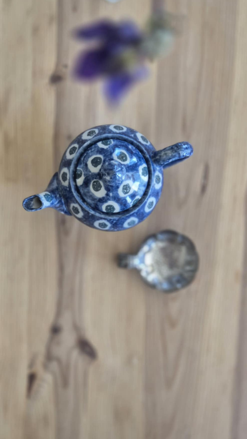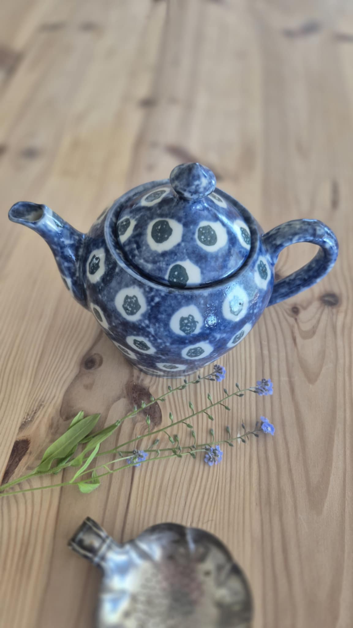 Gammal vacker tekanna i blåvitt mönster. Fint skick.